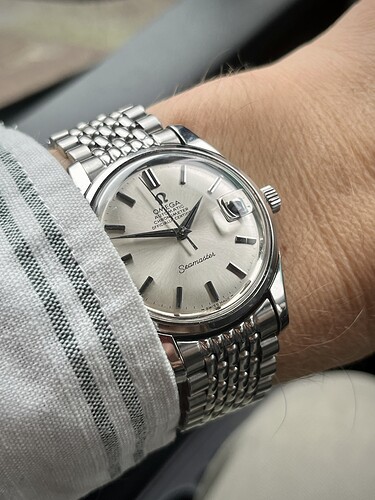 Afkomstig uit een beetje vreemd kwartet: Deze uit de forties (denk ik), een sixties Wristmaster dress watch, een seventies chronograaf met Seiko 7A uurwerk en een eighties ana-digi ‘duiker’ (in reparatie, batterij lekkage…)