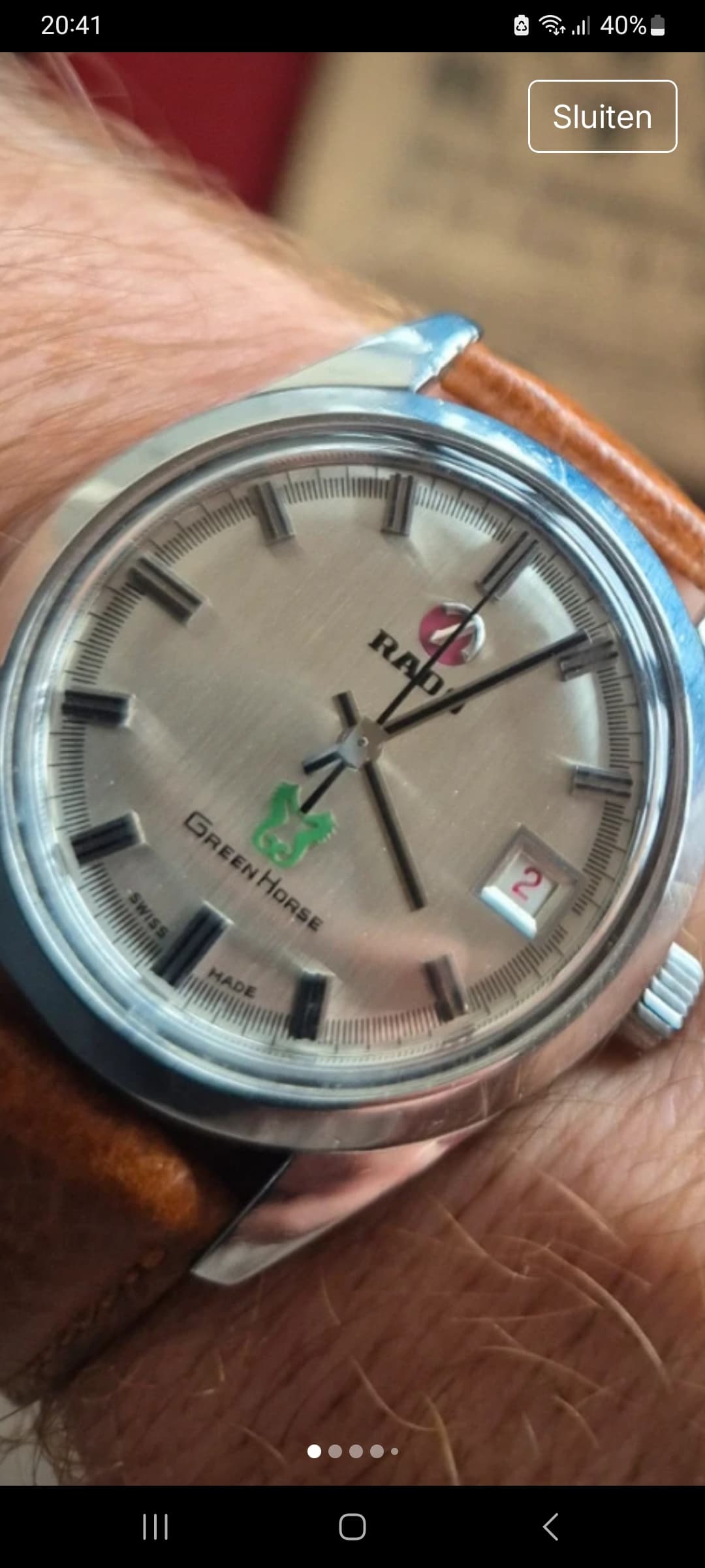 zojuist een leuke Rado Green Horse gespot in een winkel met vintage horloges. Erg leuk model, kom op het net vergelijkbare exemplaren tegen, maar ik ben geen kenner.