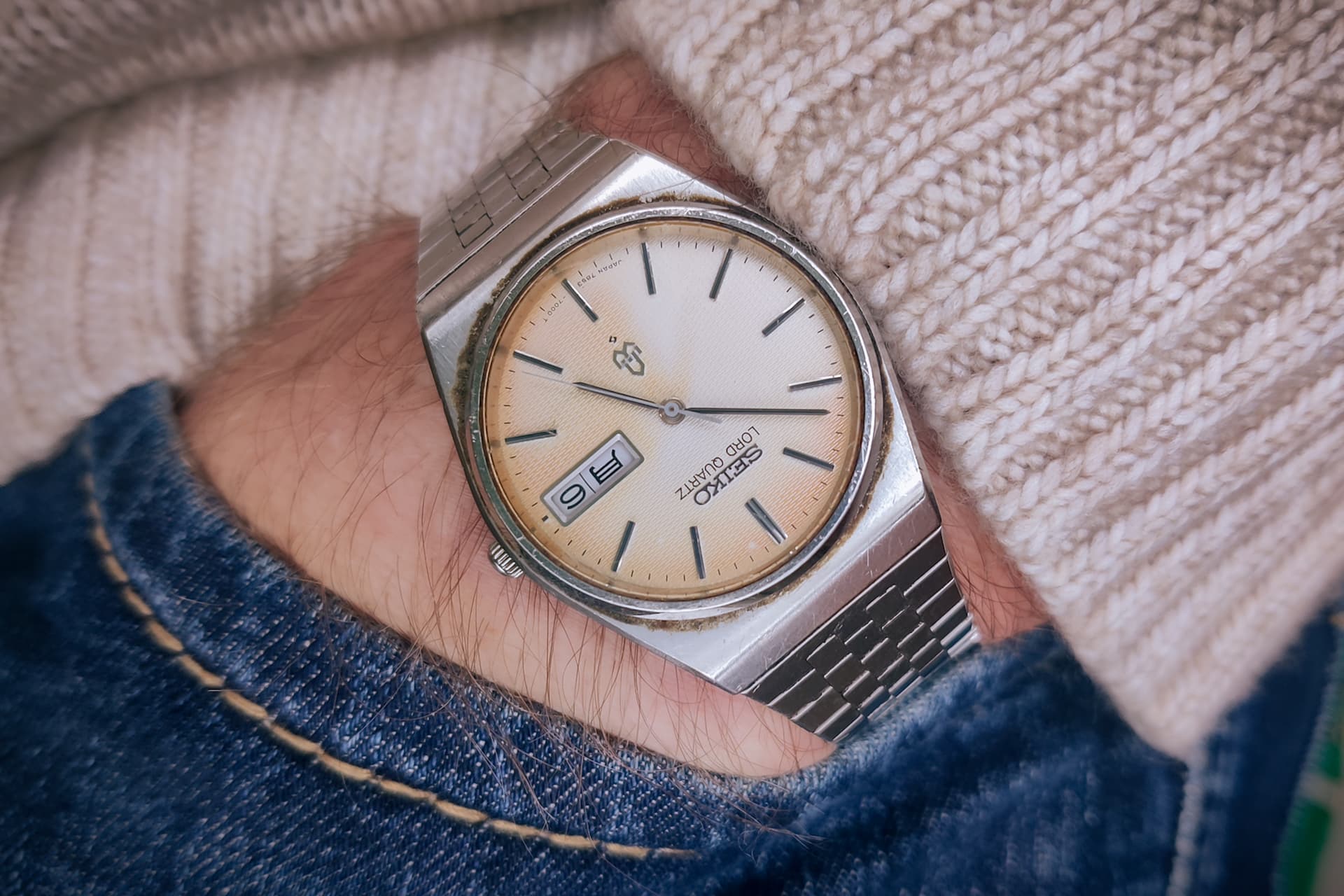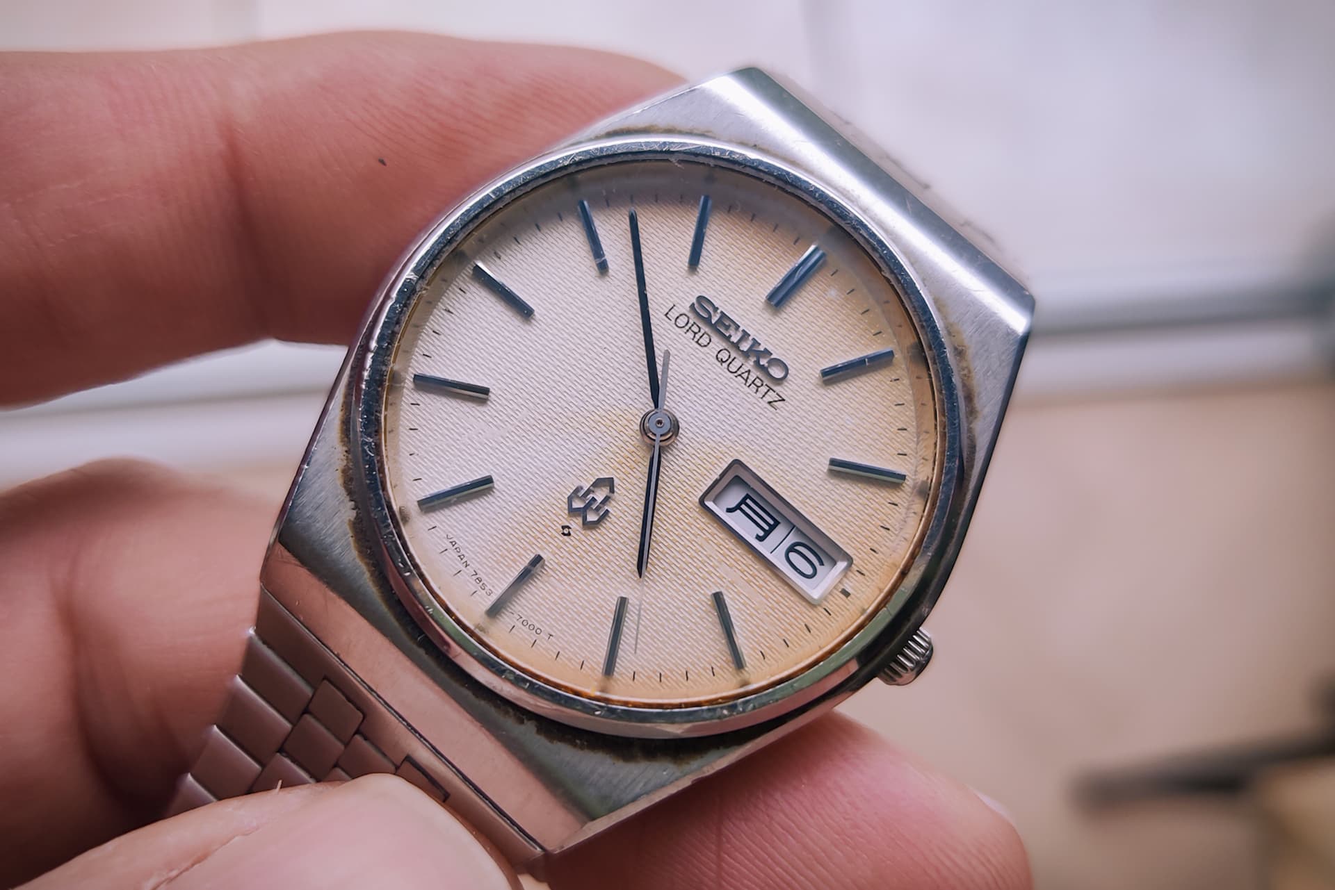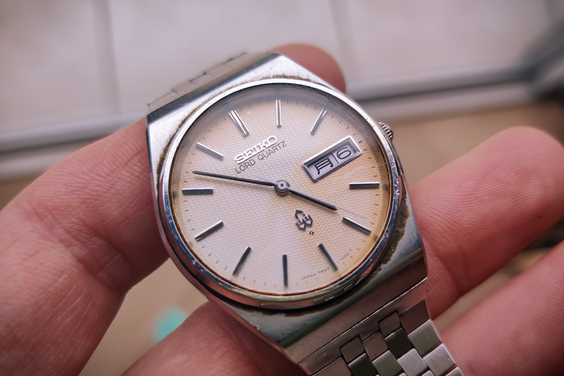 Nu was een optie om deze plaat in een andere Lord Seiko te zetten, maar misschien laat ik 'm wel in deze kast zitten; hoewel 'ie heul ranzig is, lijkt 'ie best goed op te lappen te zijn. Alleen loopt 'ie nu niet, en weet niet of dat met een frisse batterij helpt. Die dus ff bestellen en dan verder kijken.