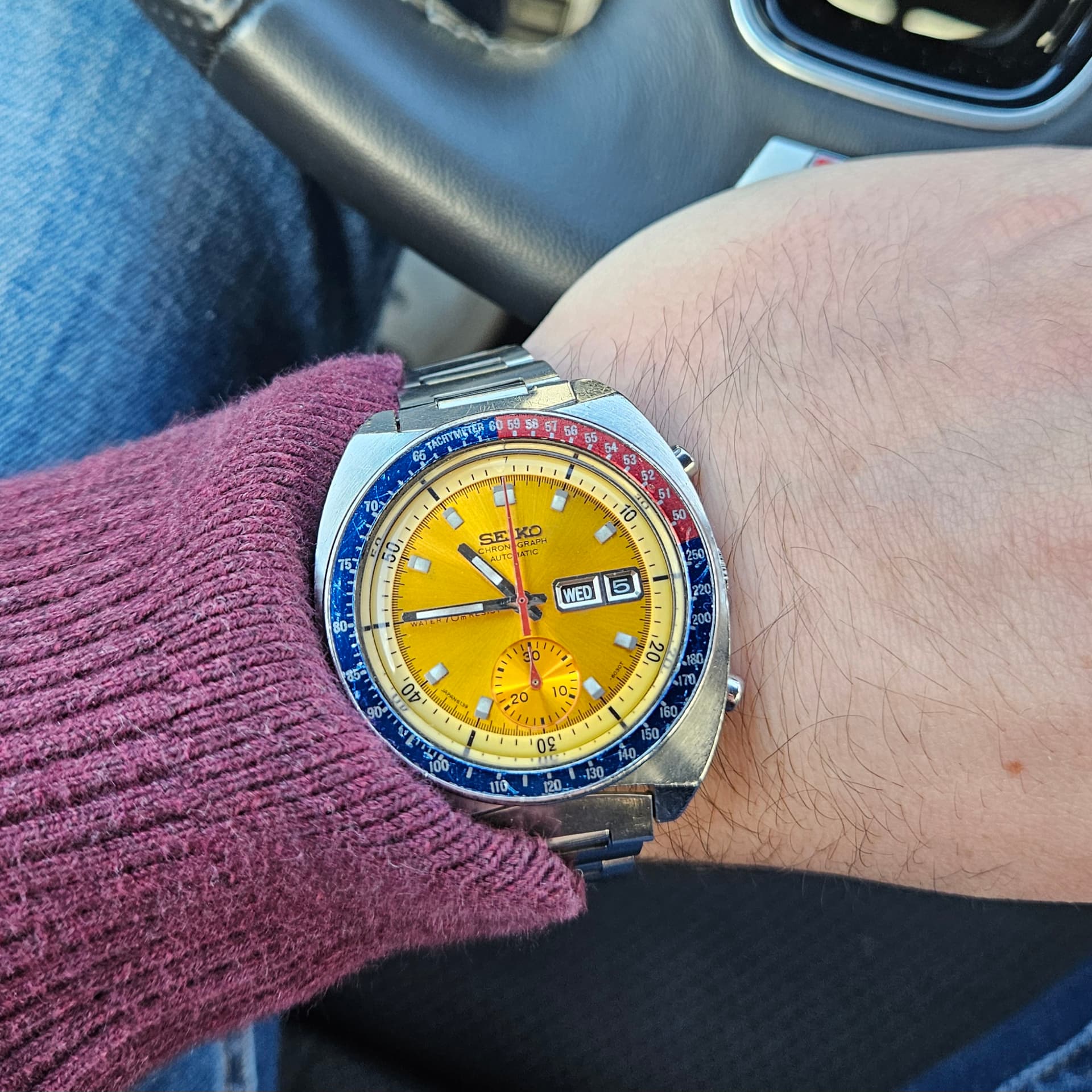Prachtige horloges! Ik ben nieuw hier op HF en groot liefhebber van vintage Seiko. Heb er zelf enkele, waaronder deze 6139-6000 “Cevert” uit mei 1970. Er moet nog wel wat aan gebeuren (en ik vermoed dat de bezel insert mogelijk aftermarket is?) maar hij loopt prima en ik ben er enorm blij mee!