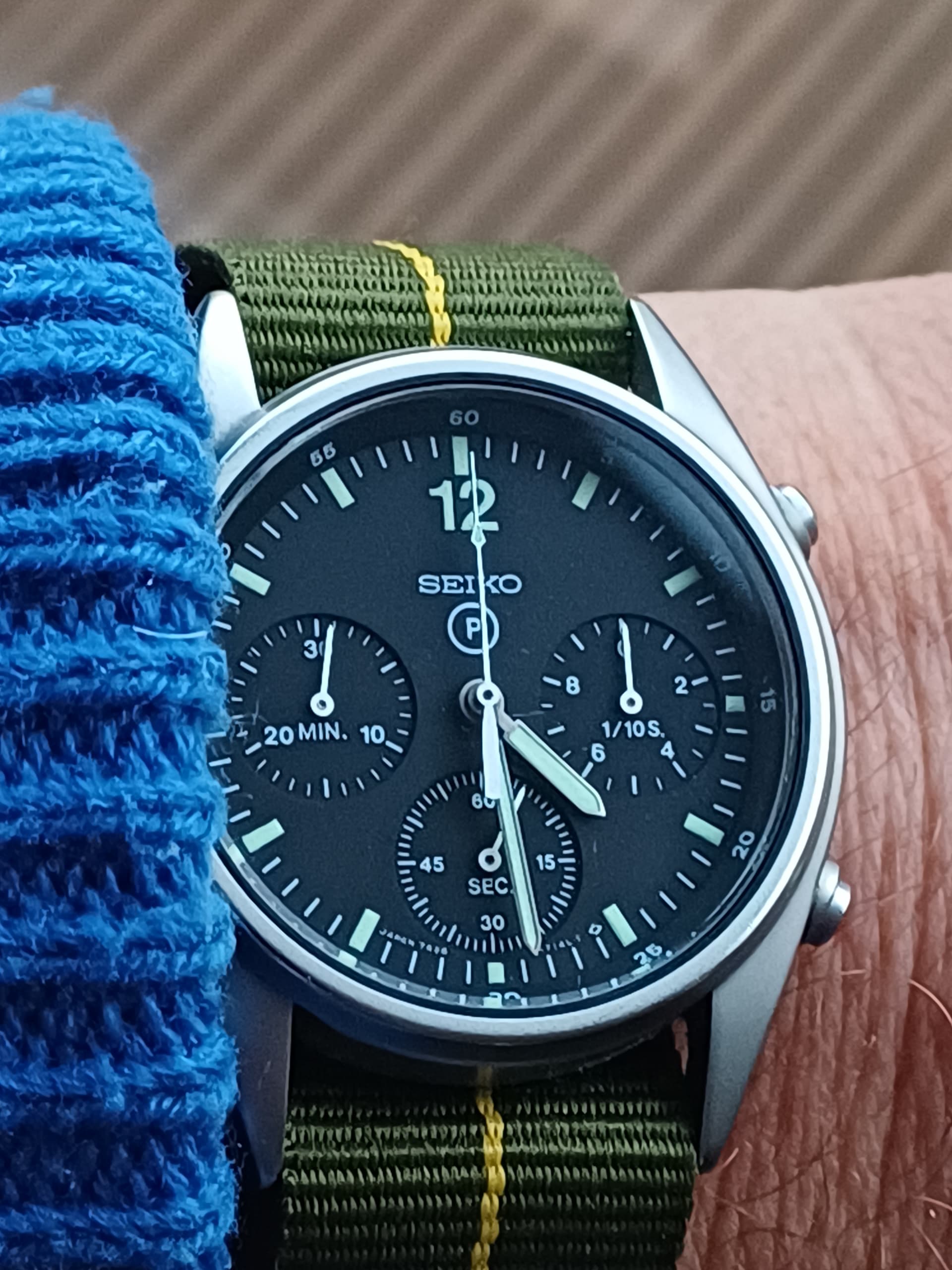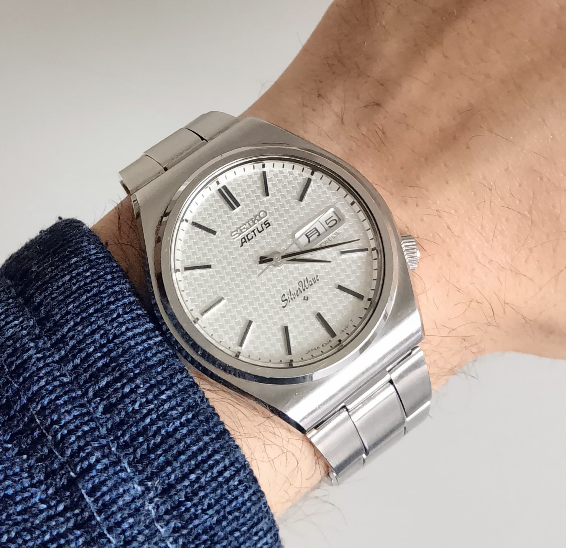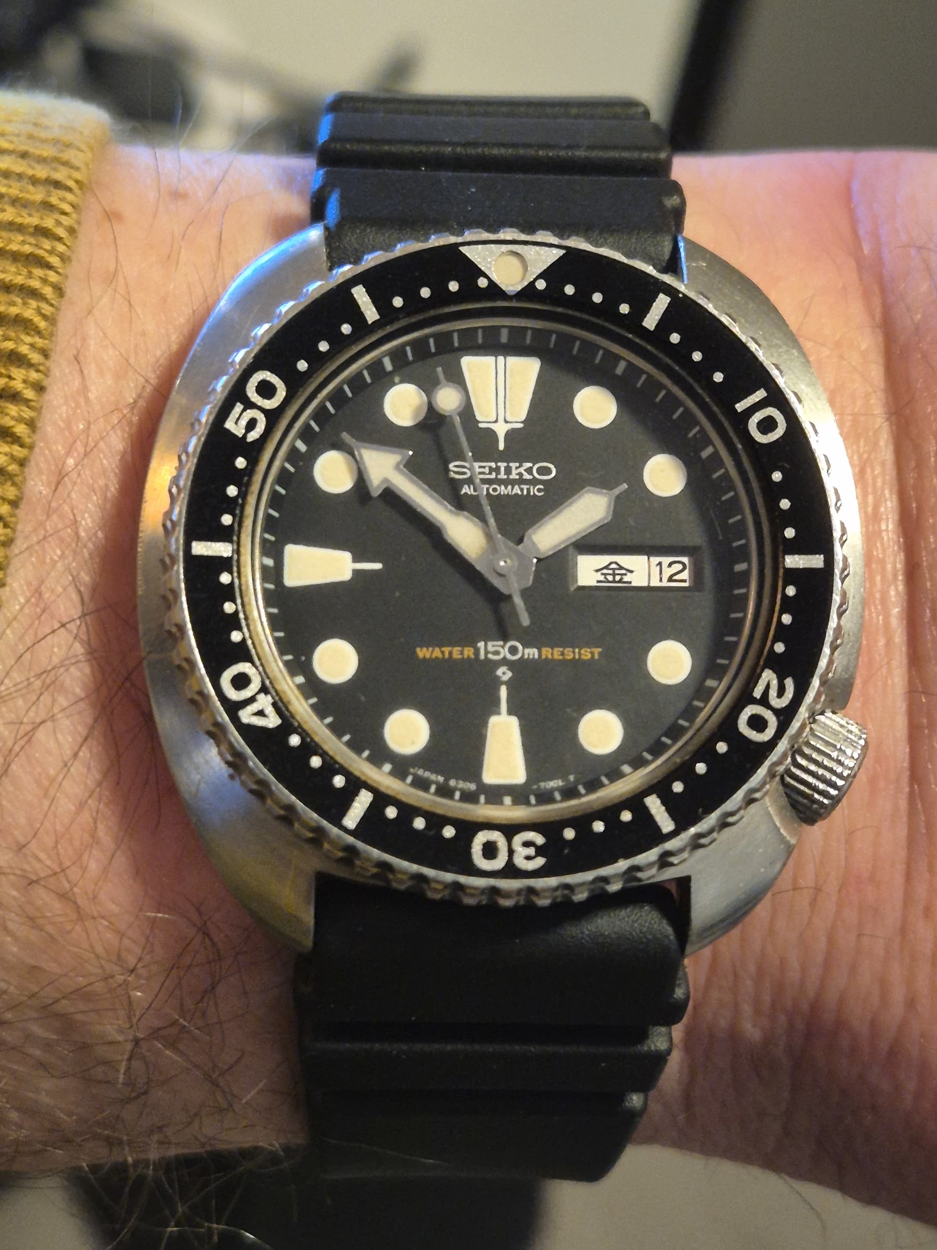 Lijkt een beetje op een Seiko Sportsman, die had ook van die opgelegde cijfers in hetzelfde font. Alleen was die wat aan de kleine kant…