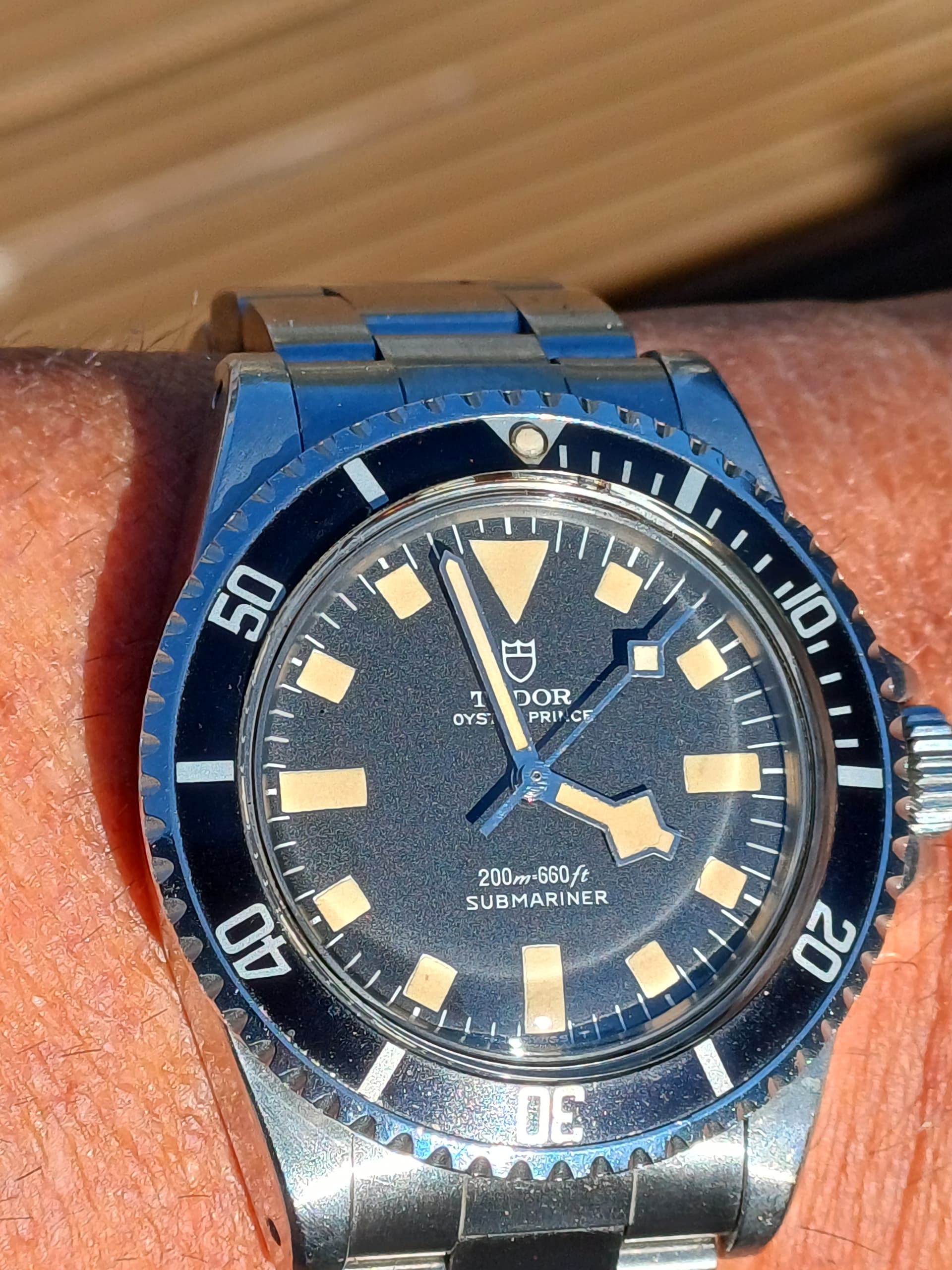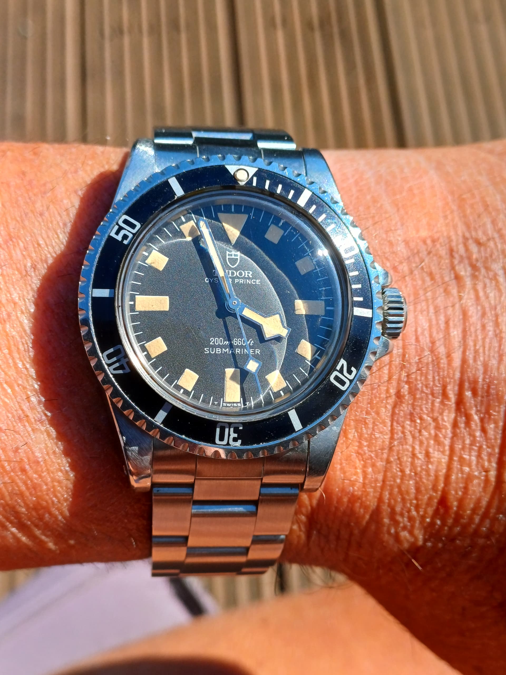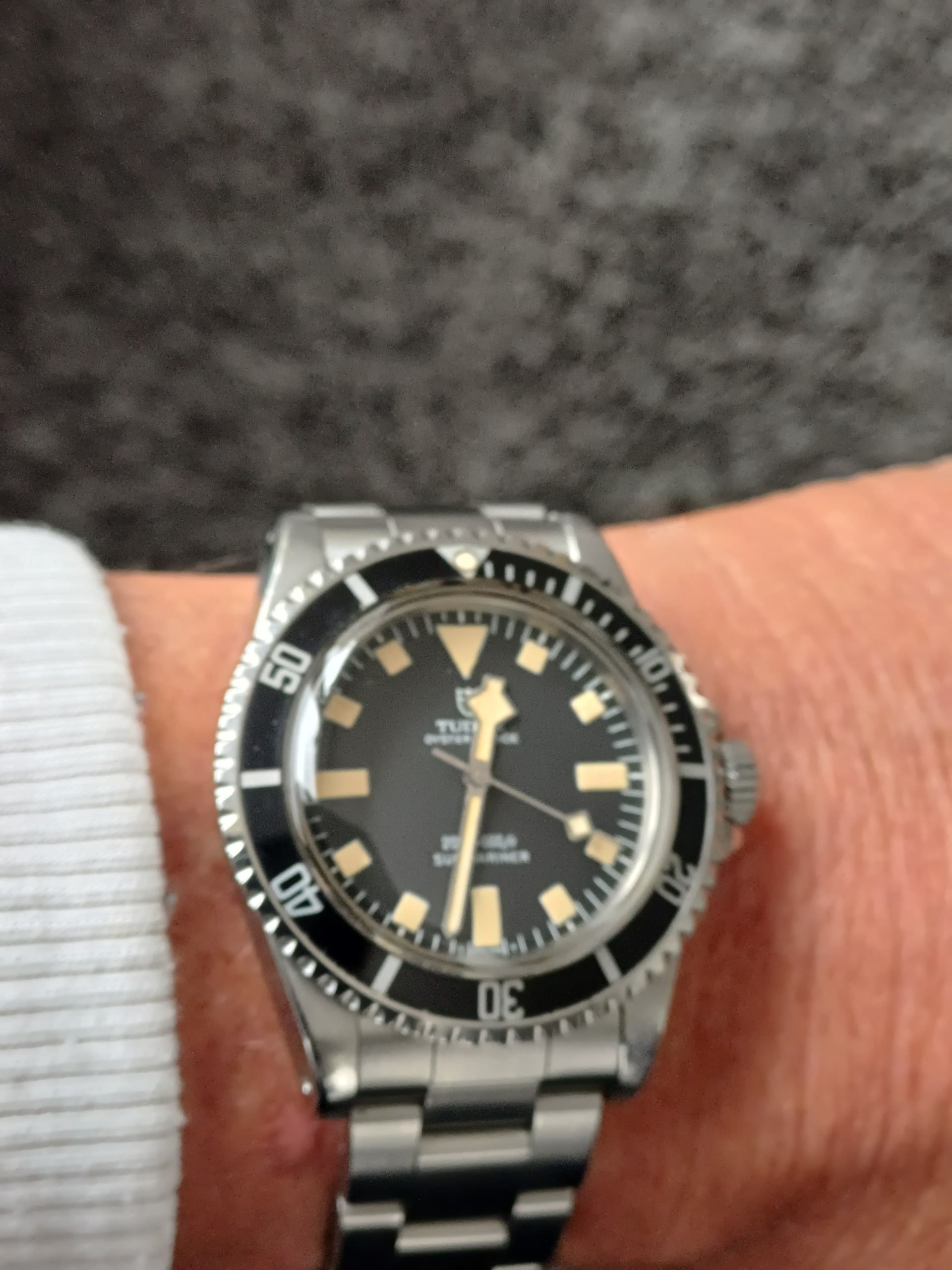 Ik draag vandaag mijn Tudor Submariner ‘Snowflake’, referentie 9411/0 uit 1979.