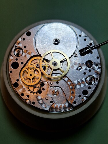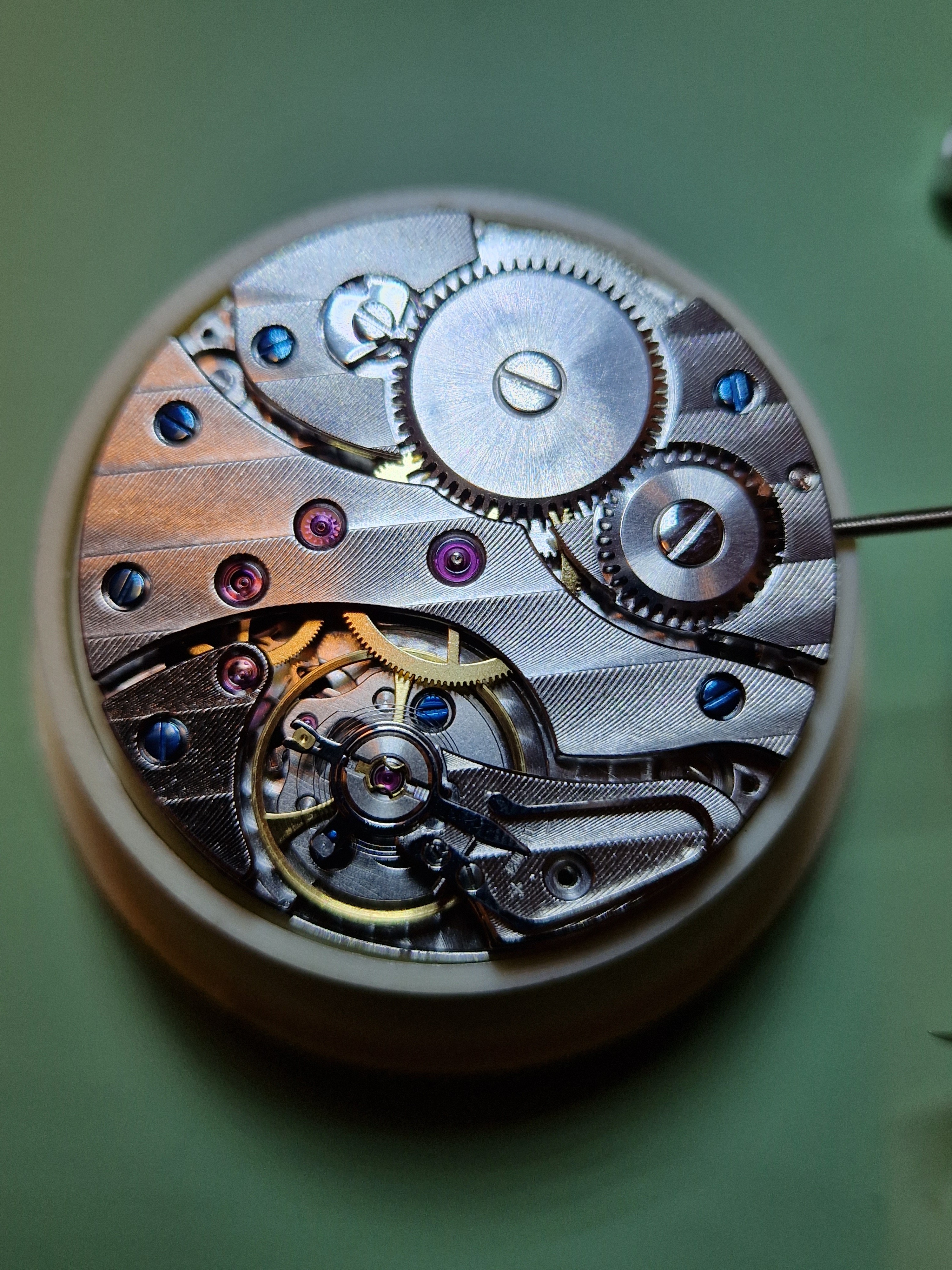 Even een fotootje van m’n huiswerk. Terugplaatsen van het anker-rad was even gehannes, ik merkte dat je dat kleine klotebruggetje goed in de gaten moet houden, anders loopt het rad niet tegen het seconderad aan.