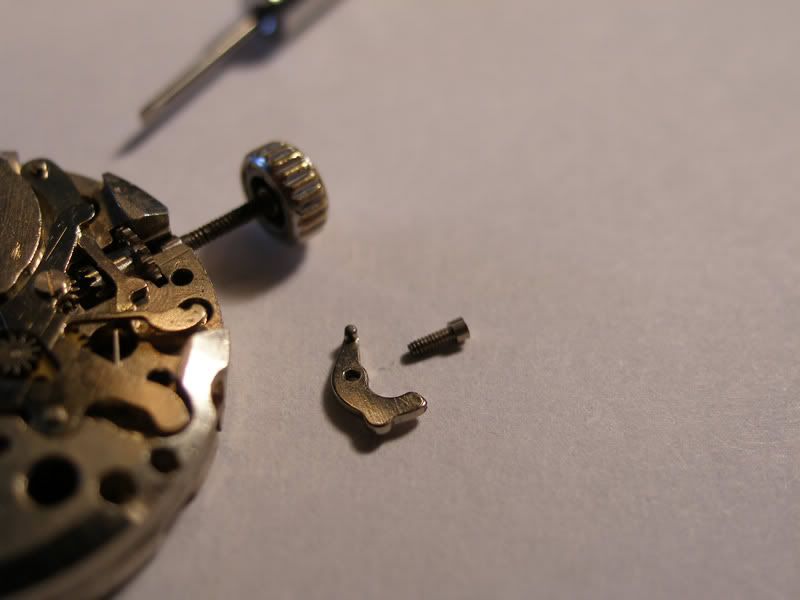 Omdat in de jaren van gebruik het tirette-schroefje was losgekomen en ook gebroken bleek (vraag me niet hoe dit kan) was het heveltje, op de foto, een eigen leven gaan leiden. Helaas was ik op dat moment nog niet in het bezit van heel veel onderdeeltjes zoals schroefjes e.d. dus heeft Paul K zijn ‘ouwe zooi’ omgekeerd om mij van een goed passend schroefje te voorzien!