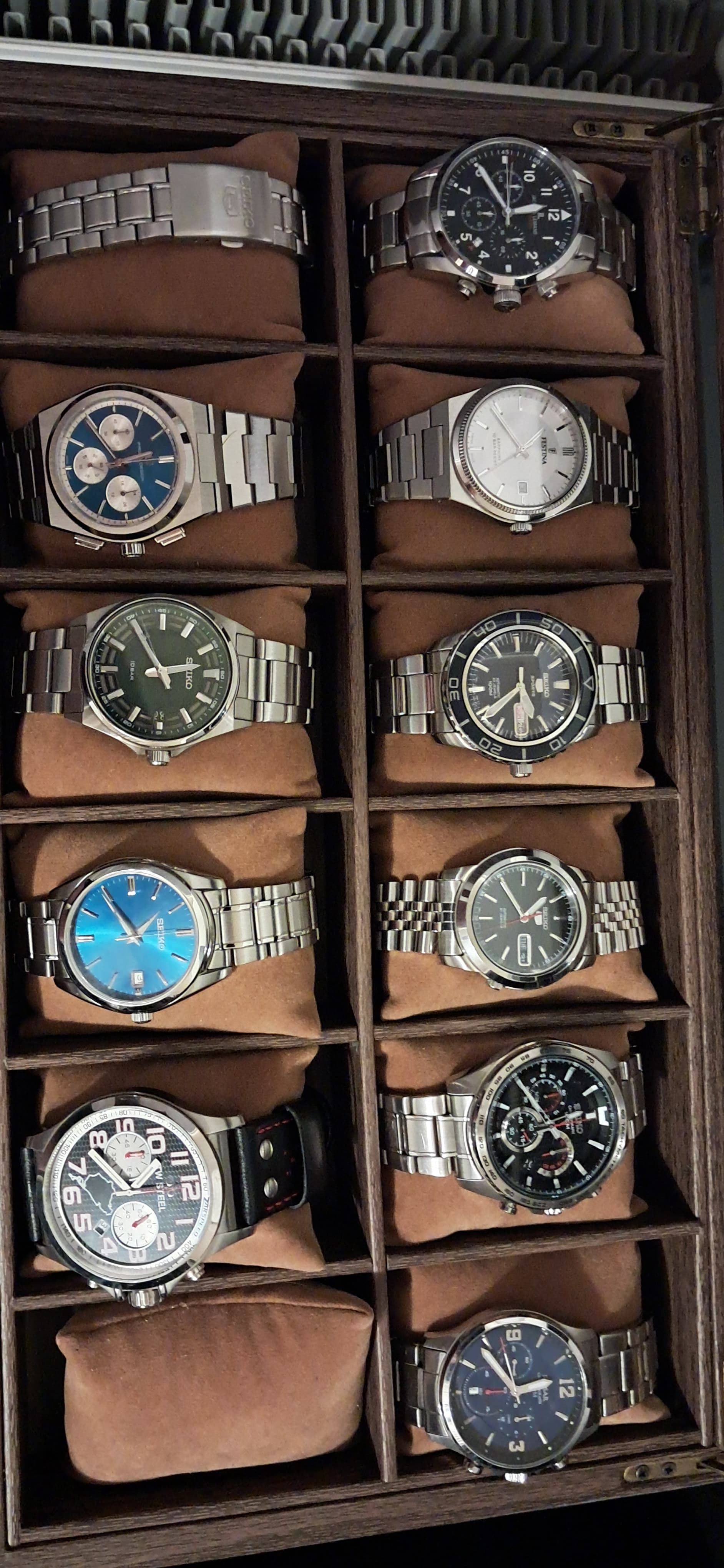Meeste aanwezig in de collectie is Seiko, met daarnaast oa een Festina, TW Steel, Pulsar. Dagelijks op t werk draag ik vooral Fossil, waarbij het minder erg is als er een krasje op zou komen.