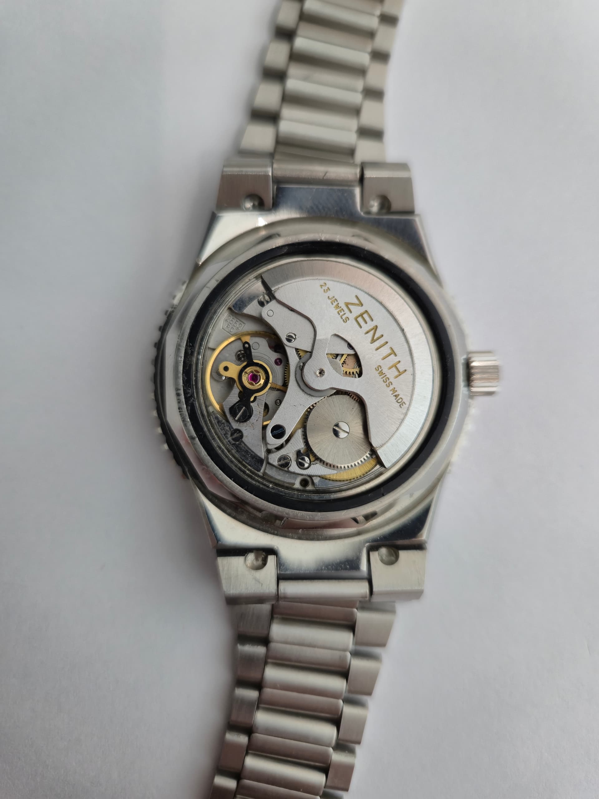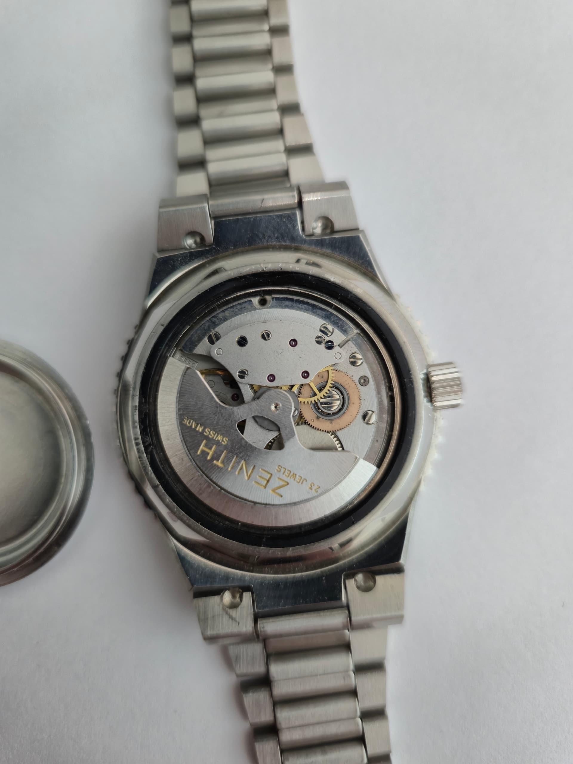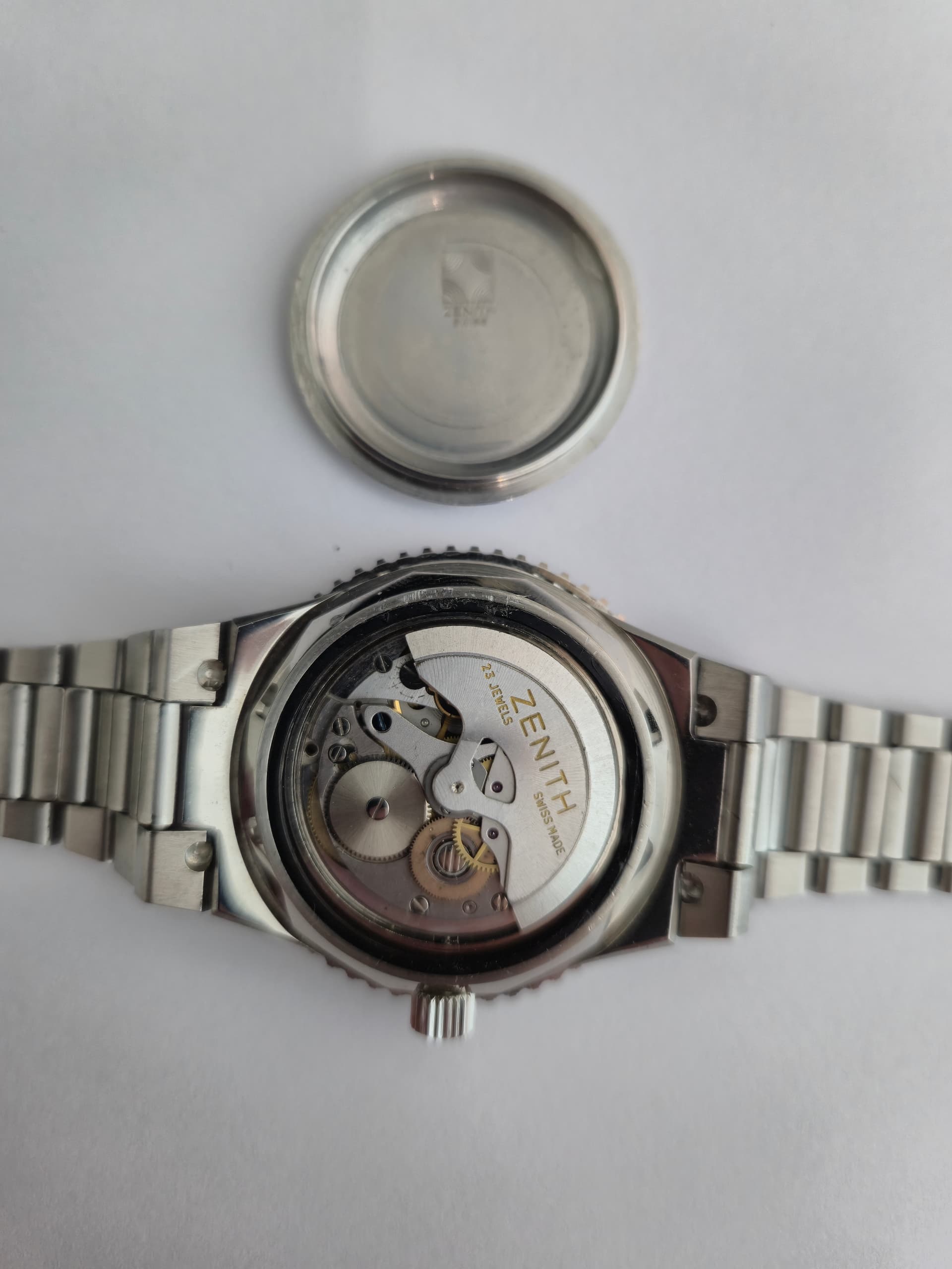 Ik ben wel voornemens om het horloge te herstellen en de originele bracelet te vinden (de huidige is niet origineel, dat was wel bekend). Dus tips betreft het vinden van Zenith bracelets of iemand (bedrijf) die het uurwerk (Zenith 2552 PC) een service beurt zou kunnen geven, de pakking kan vervangen en de bezel opnieuw uit zou kunnen lijnen zijn zeer welkom!