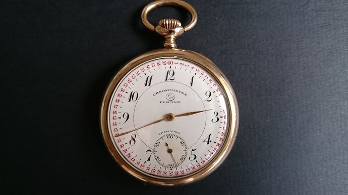 Ook nog een mooi vergulde Chronometre van Election (ca 1915):