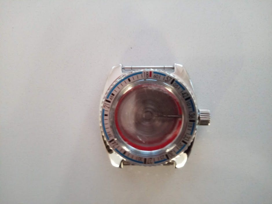Kast overgenomen van een duits Uhrforum lid. Hij was al ontchromed maar helaas ook verouderd met Gun Metal. Paar uurtjes schuren met chroompolisch en het resultaat mag er zijn.