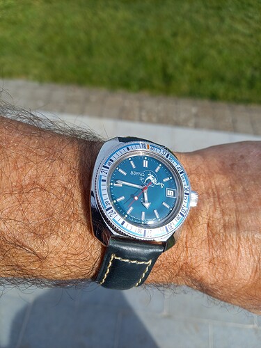 Leuke frisse bezel bij de klassieke blauwe scuba Stefaan!