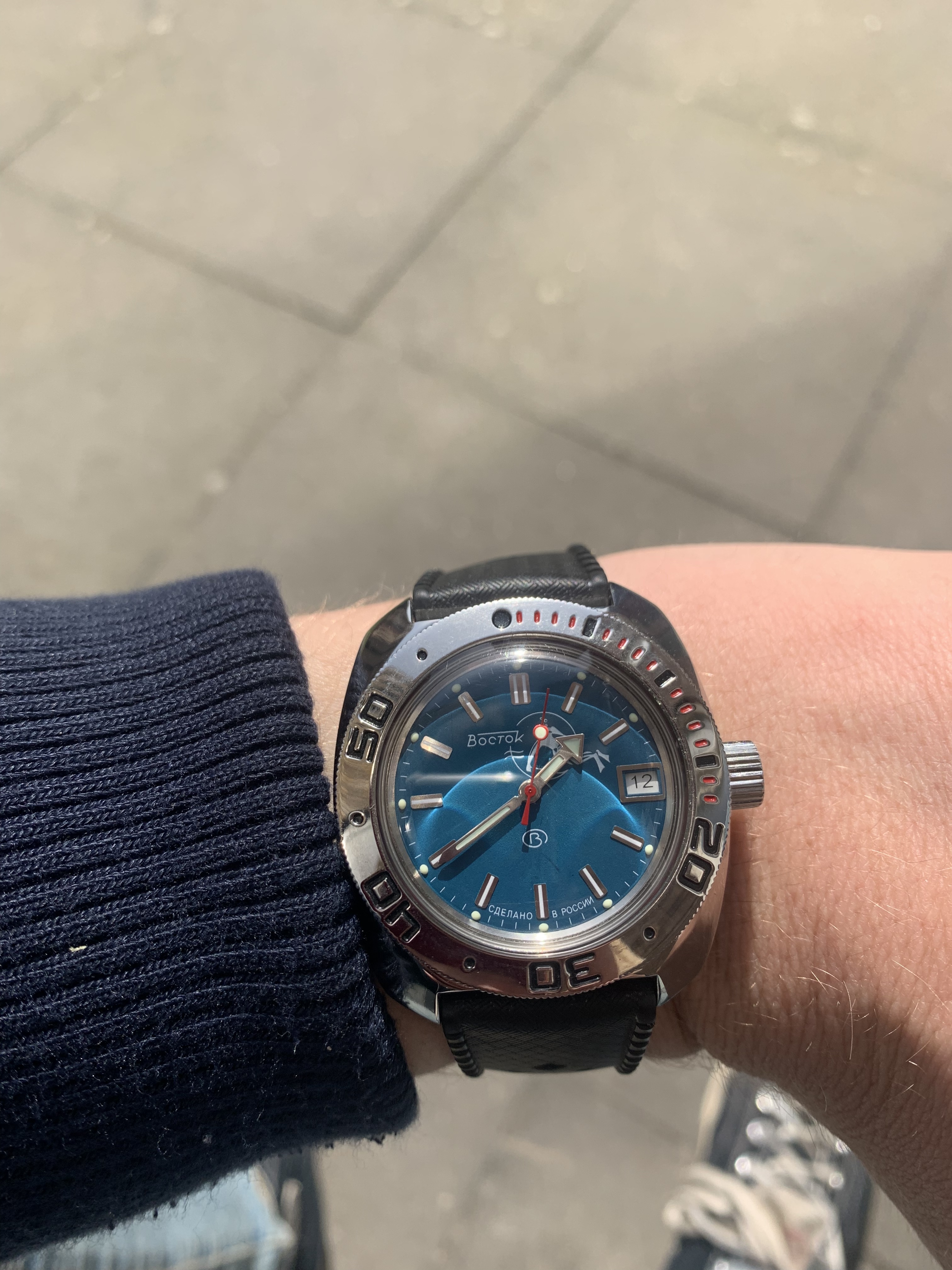 Ik ga wel niet aan de wijzers schaven, maar wel zilverkleurige amfibiawijzers nemen met een andere secondenwijzer en ook een amfibia caseback. Zo wordt het een beetje een amfikomandirkie.