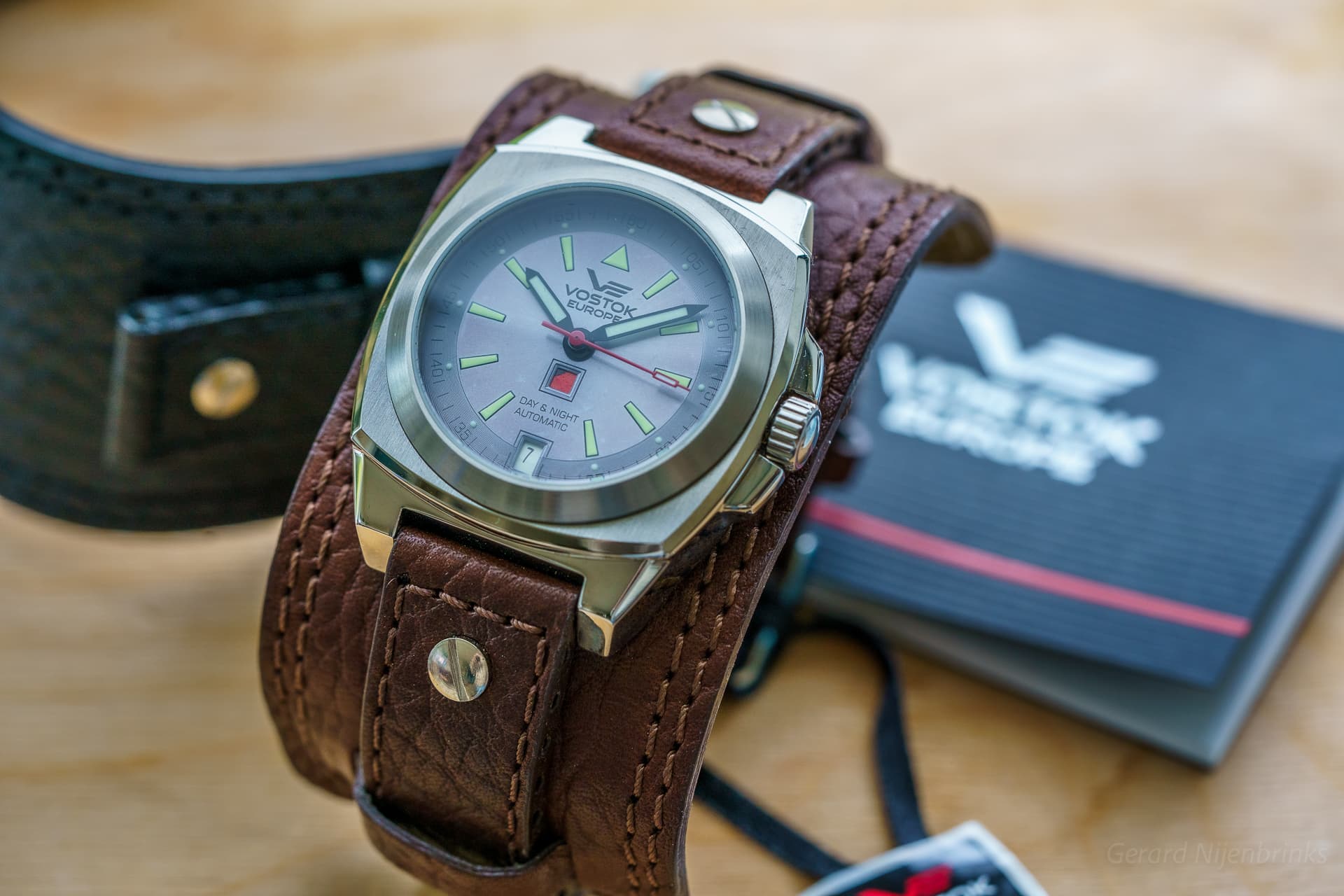 Soort uurwerk en kaliber: Vostok caliber 2432 met dag/nacht aanduiding