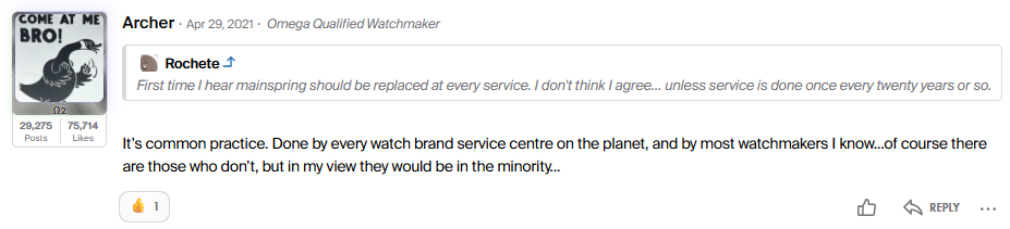 Nee, periodiek je amplitude checken kan goed zijn om eens te kijken hoe de vlag er bij hangt qua onderhoudsbehoefte. Ook neem ik het onderhoudsinterval van de fabrikant serieuzer bij 24/7/365 gebruik dan bij horloges die in roulatie eens een dag of twee draagtijd krijgen per drie weken.
