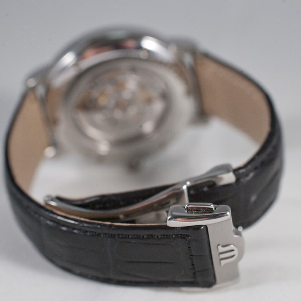 Kan momenteel geen foto toevoegen. Maar heb ook het idee dat het met de buigzaamheid te maken heeft. Een kroko-print bandje is het in ieder geval niet. Wellicht is het een maurice Lacroix ding…