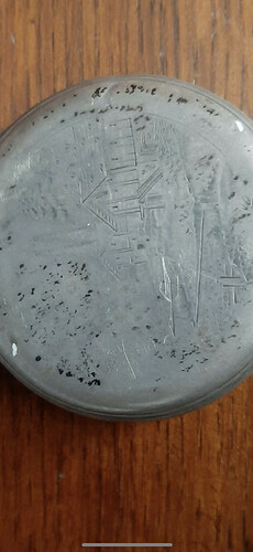 Hier zien we geen stempel, de tweede deksel is geplakte, en de beugel is van koper.
