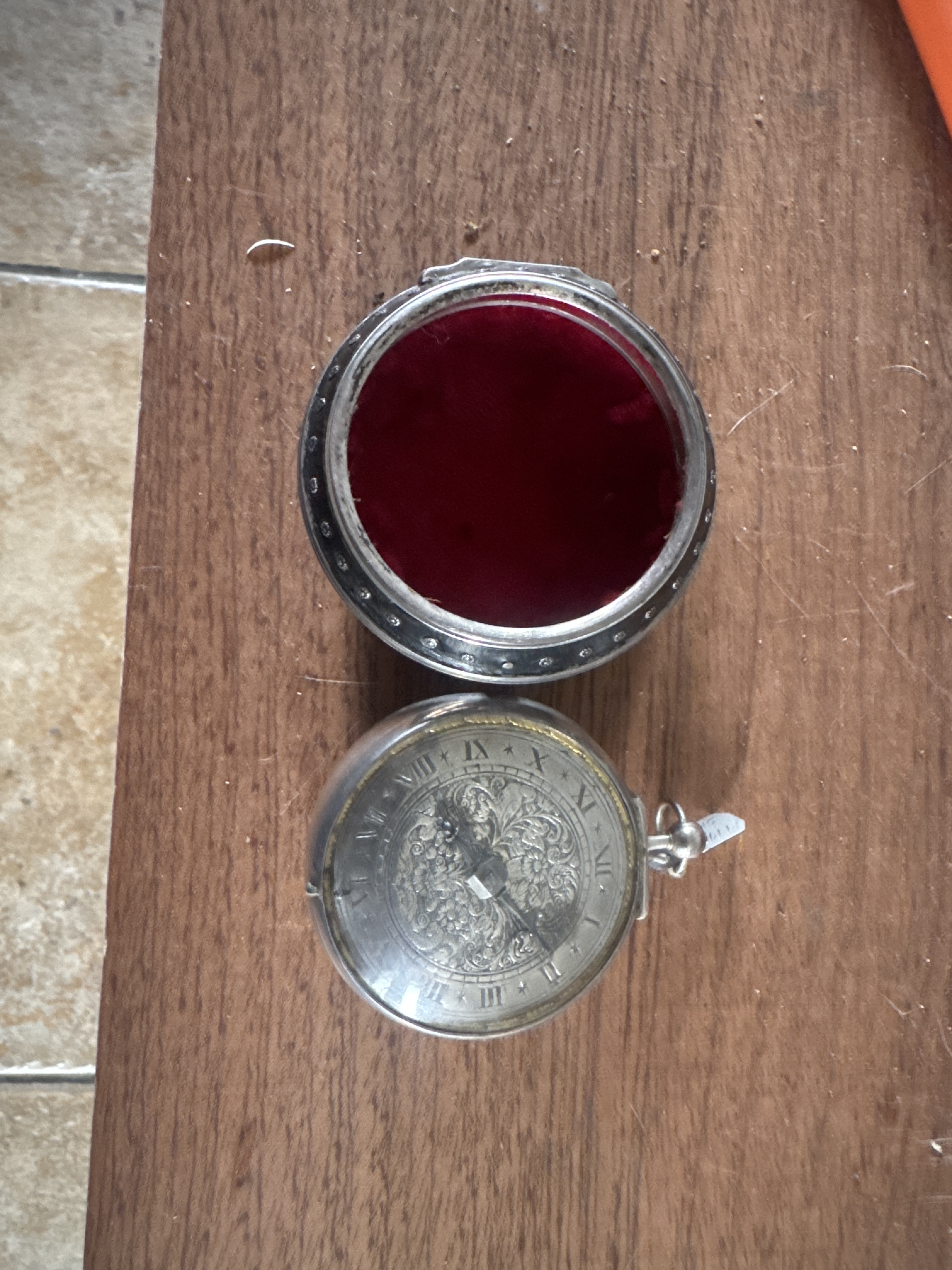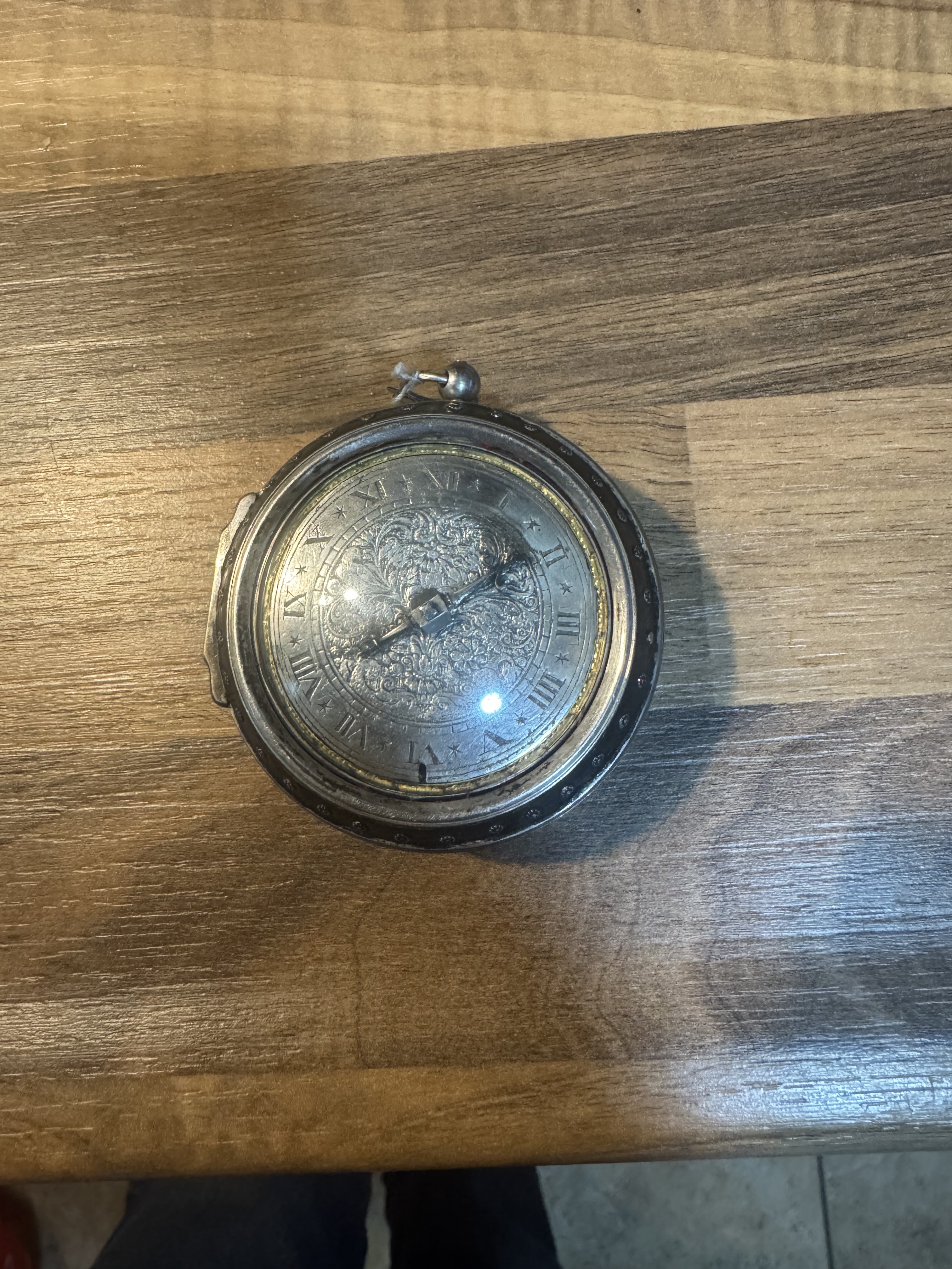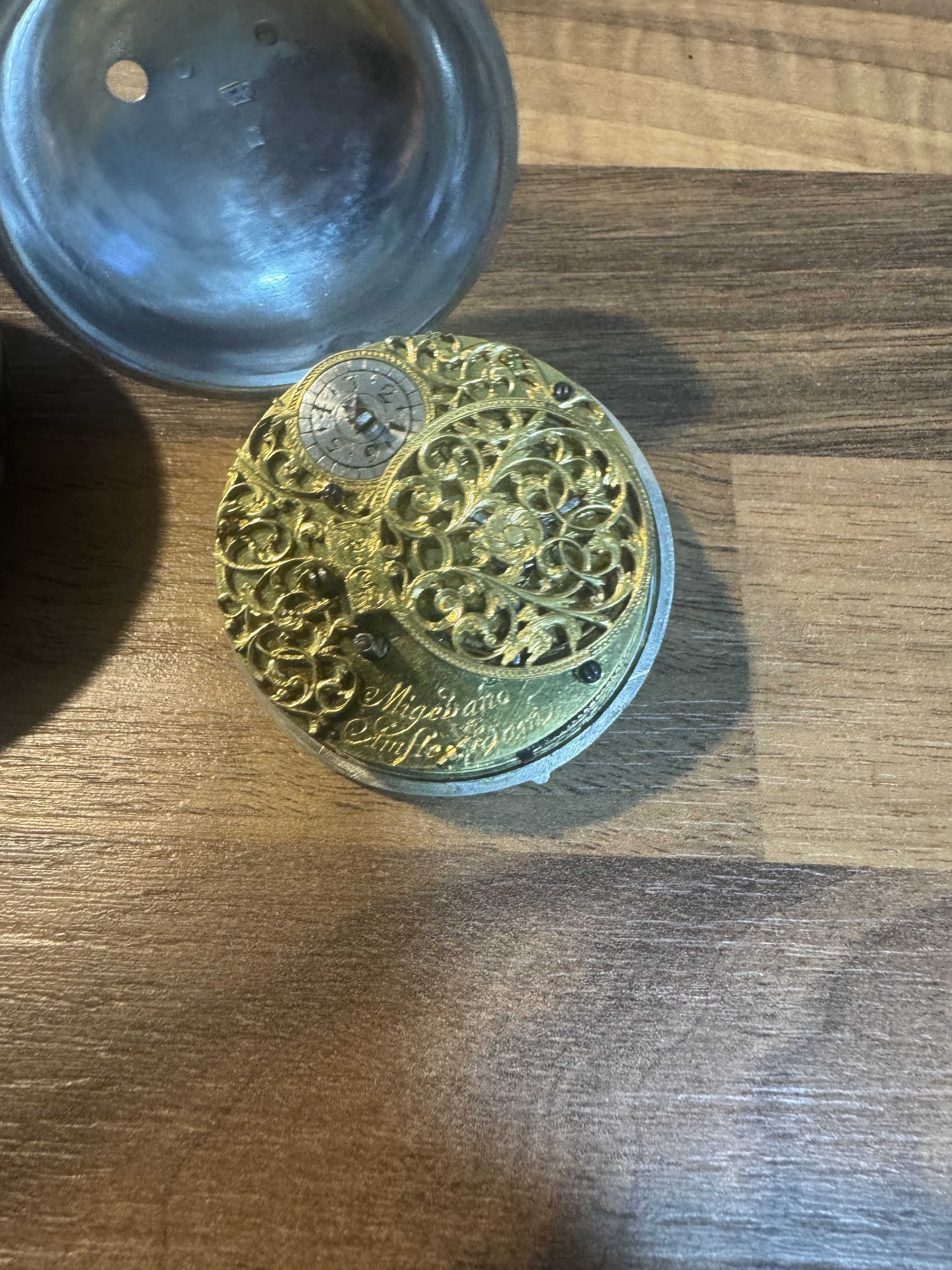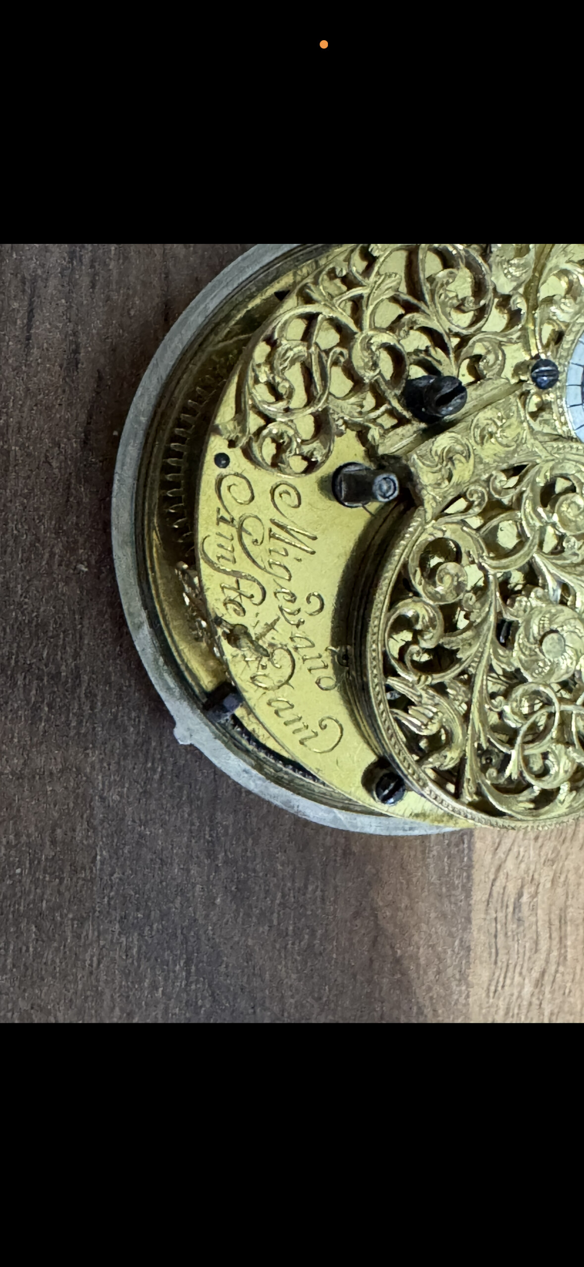 De maker is inderdaad moeilijk te vinden en het is een mooi voorbeeld van een oud zakhorloge.