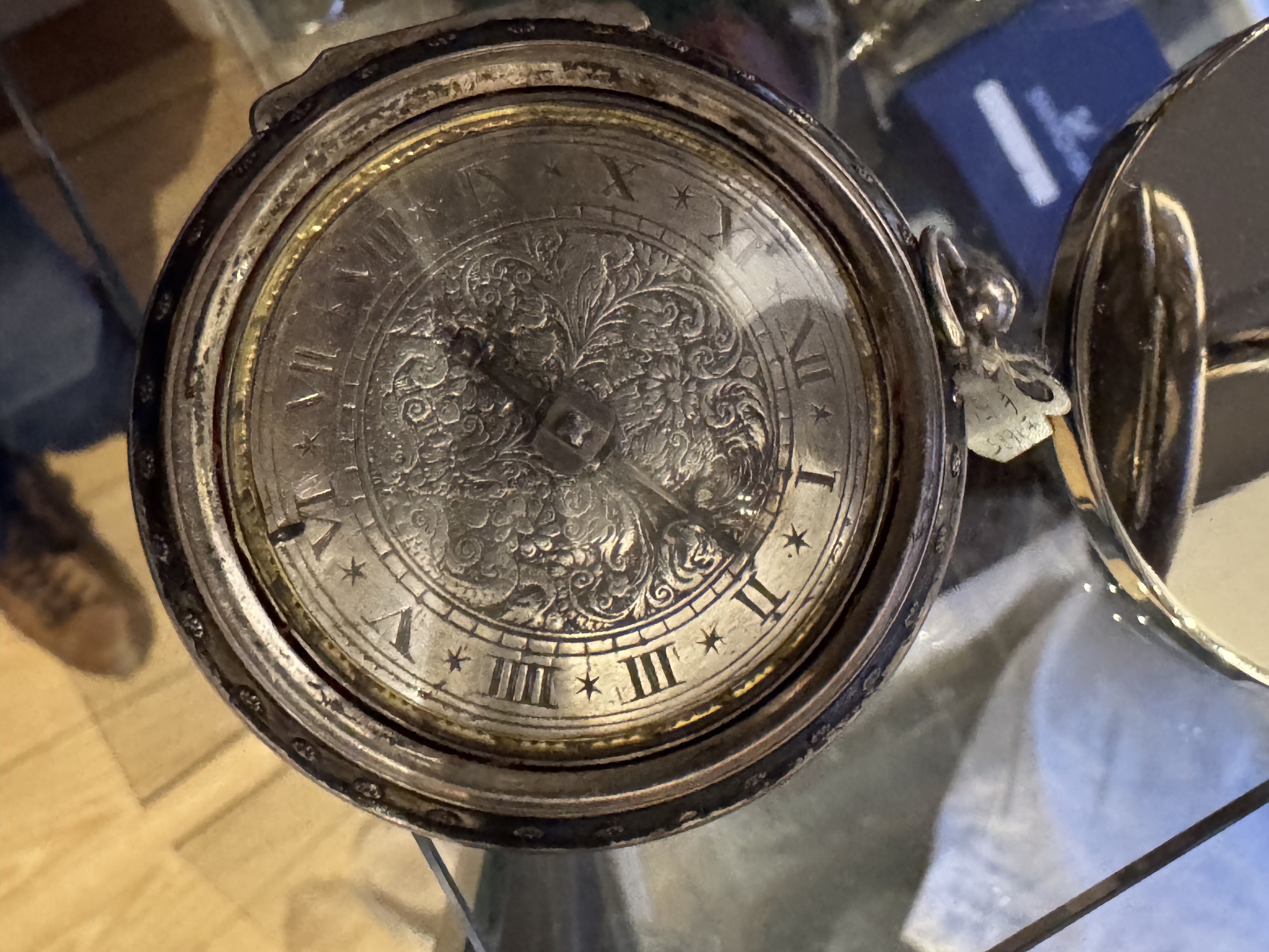 Dit horloge is in de horlogewereld bekend onder de naam onion (ui). omdat het een behoorlijk dik horloge is. Het conisch rad is ook behoorlijk hoog, dat duidt op een vroeg uurwerk. De bevestiging pilaren tussen de platines zijn hier bijzonder mooi geciseleerd uitgesneden, dit geeft aan dat het horloge ouder is dan de uurwerken met een vierkante pilaar. Dit handwerk werd gedaan door de leerling horlogemaker die zijn kunde kon laten zien en om zijn handvaardigheid te verbeteren.