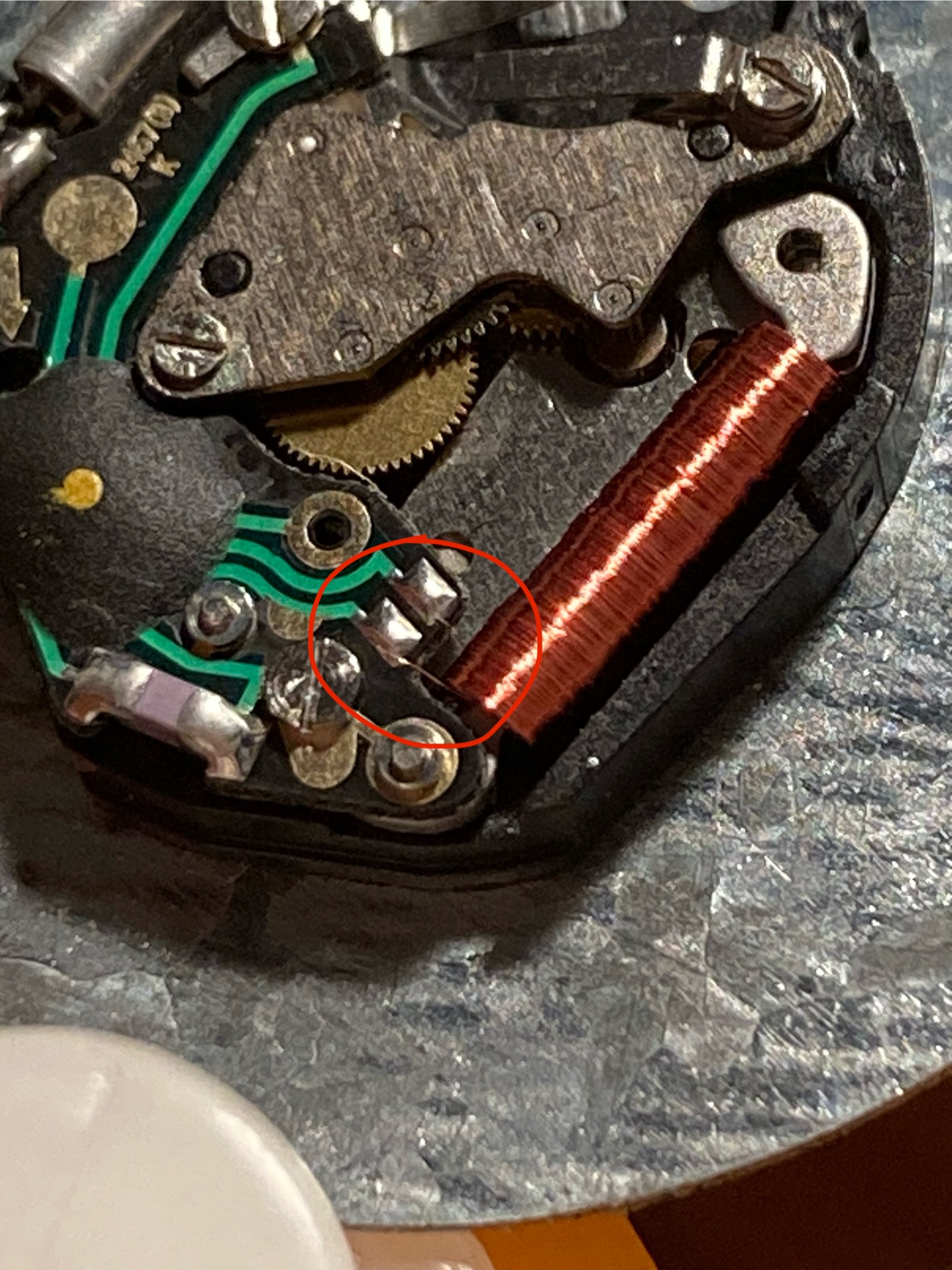 Ik zag bij de spoel één enkel koperdraadje naar een soldeer punt van de chip lopen, echter vind ik dat vreemd want ik ben gewend dat een spoel een enkele module is die aan twee kanten contact maakt met het circuit, en dus niet een enkel koperdraadje dat contact maakt met een soldeer punt.