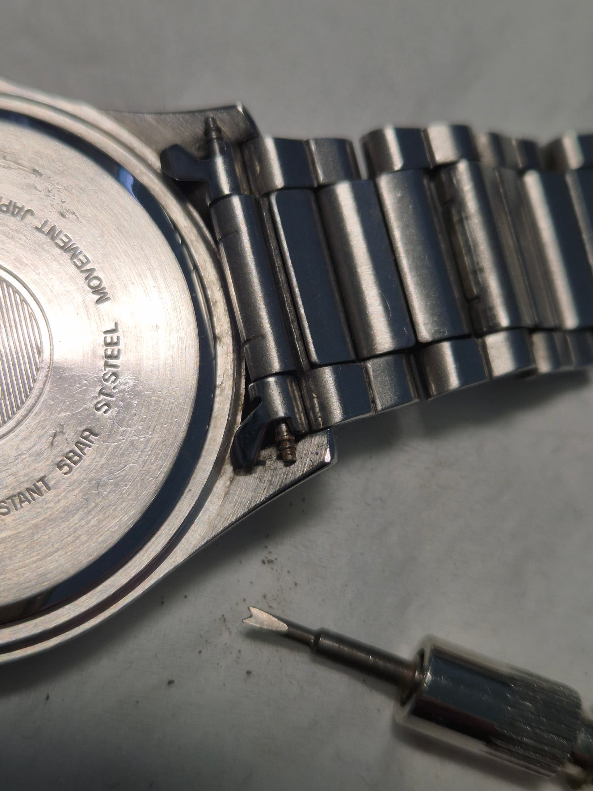 Maakt niet uit welk horloge, gewoon in het algemeen. Punt is dat je de pushbars niet geplaatst krijgt zoals dat bij een rechte schakel wel lukt. Ik heb het natuurlijk wel over horloges, waarvan de afstandsmaat dezelfde is als de gebogen schakel. Ik vermoed dat hier een aparte handeling voor bestaat.