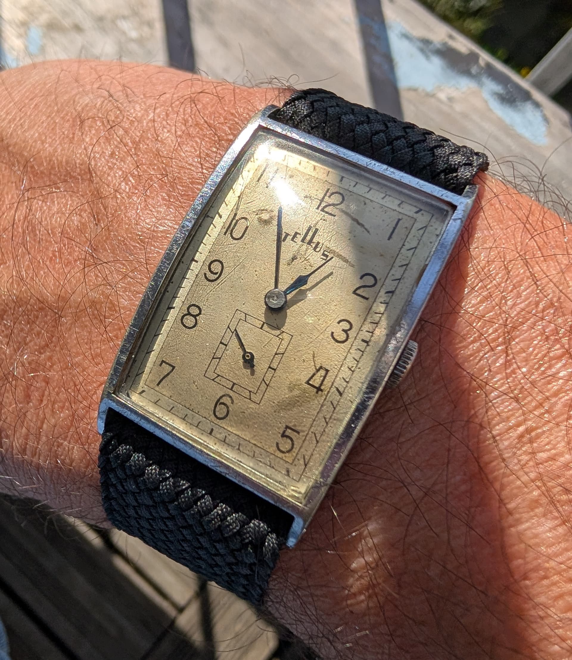 Dankjewel, Dennis. Deze heeft een goede service gehad van een gewaardeerd HF lid. Loop weer als een zonnetje. Ik heb het glaasje opgepoetst en er een passend perlon bandje op geslingerd. Ik draag het af en toe en met plezier. Weer even voor de foto omgedaan nu