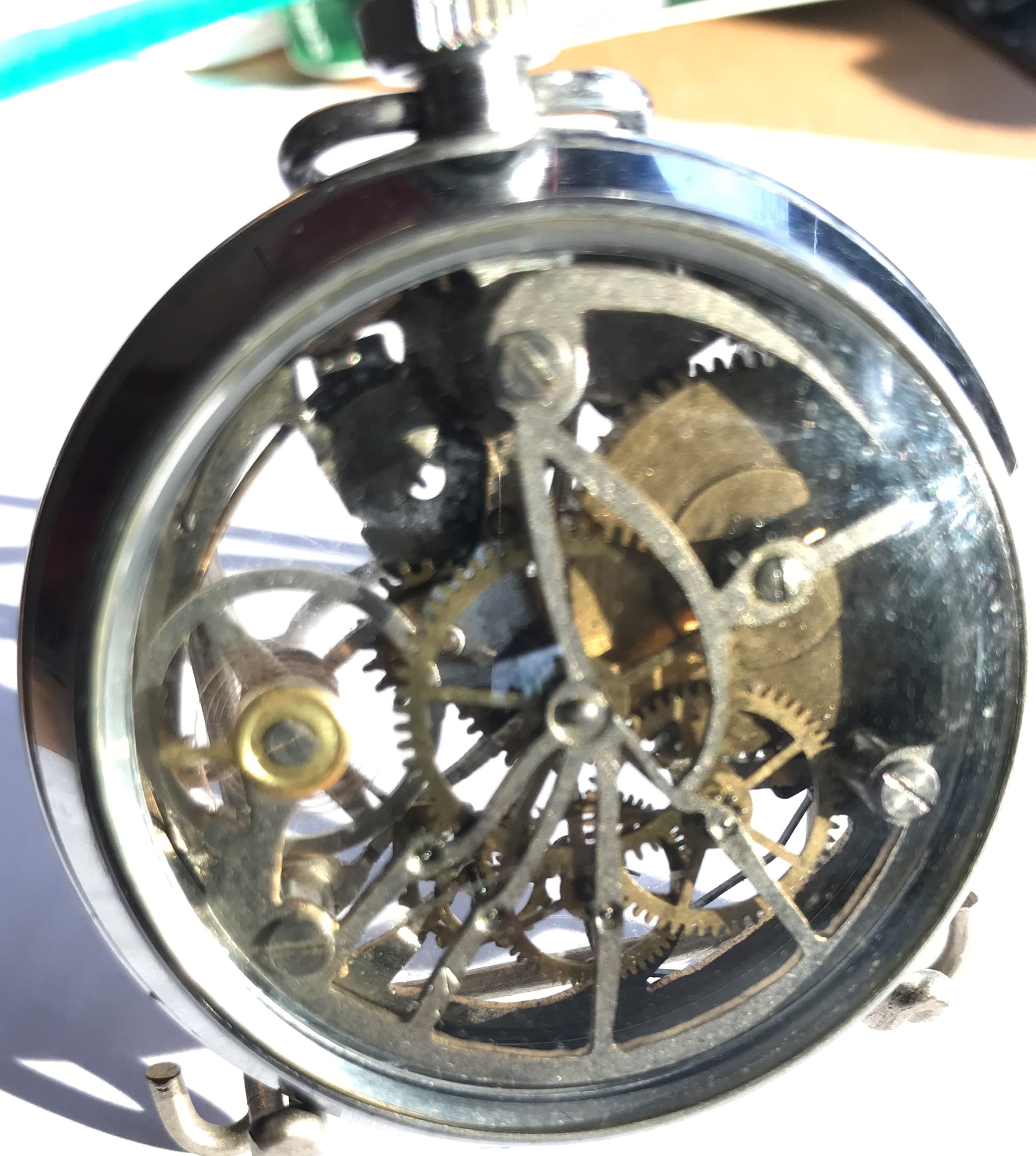 Apart. Zou het een thuis knutsel werk zijn? Het is een eind 19e eeuws Amerikaans “lever set” uurwerk. Tijd instellen door het glas los te schroeven en het hendeltje ter hoogte van ongeveer de 2 positie uit trekken. Destijds heel handig omdat je niet per ongeluk de tijd kan veranderen. (Bijvoorbeeld bij de spoorwegen)