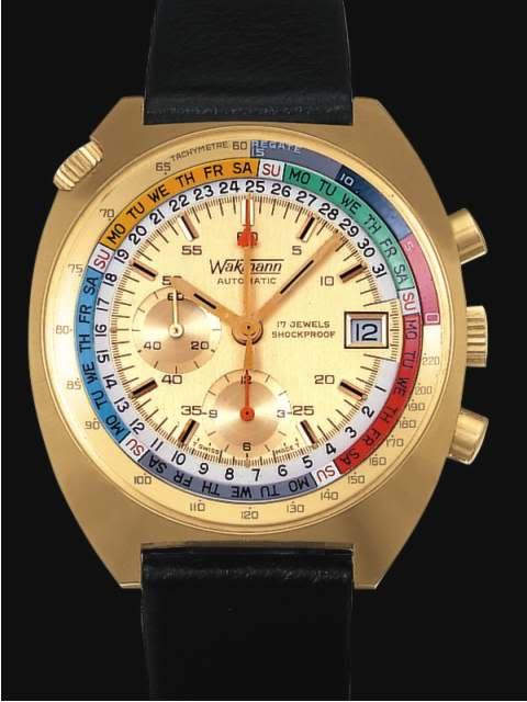 Je ziet ze af en toe wel een voorbijkomen op Ebay, het is een 11,5 lijns Font (FHF - Fontainemelon) kaliber 205 uurwerkje, de (met de hand te bedienen) datum en maandaanduiding horen zo op dat kaliber, is dus niet iets wat later op een uurwerk met enkel een datumwijzer erbij gemaakt is.