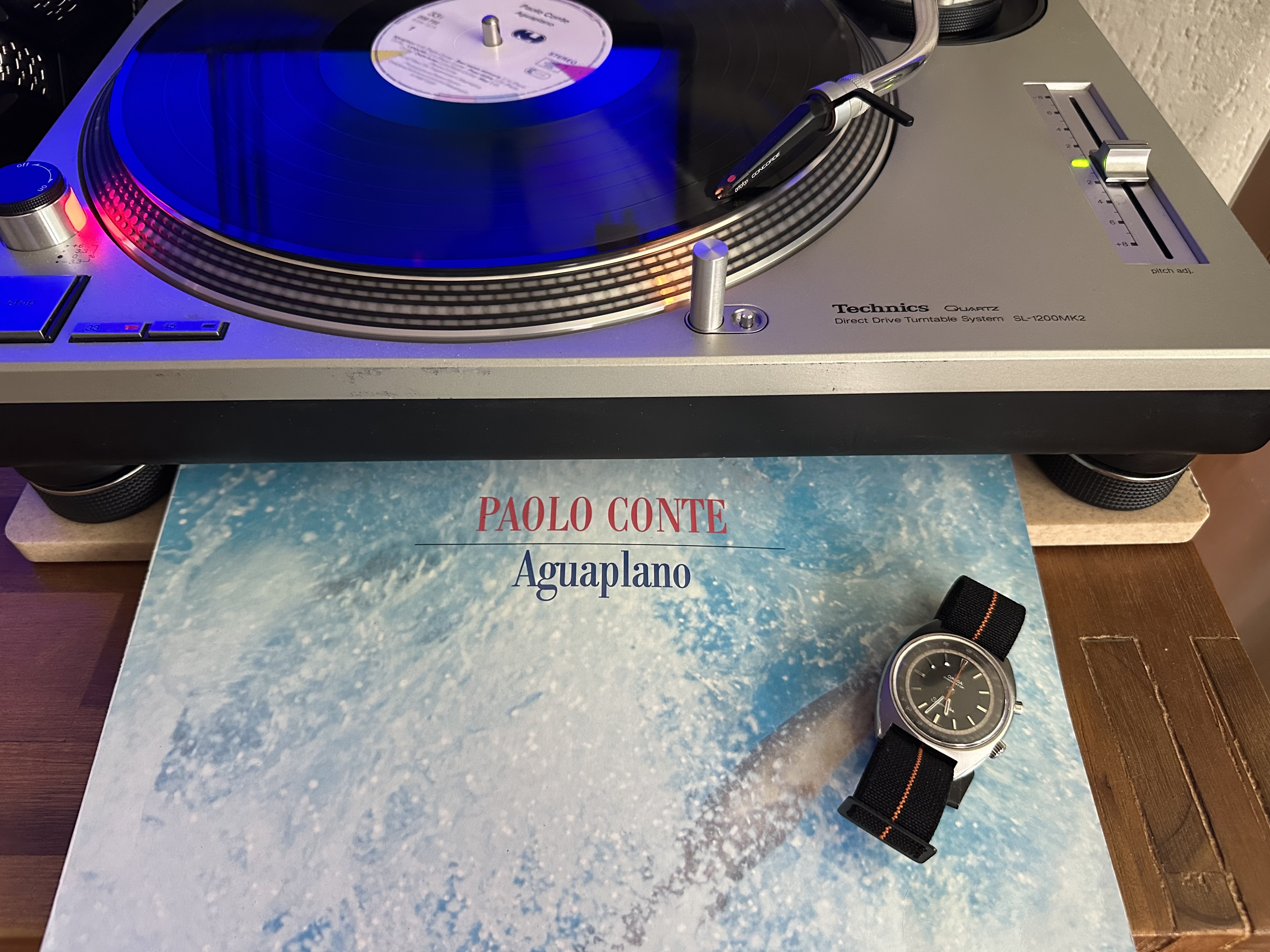 De elpee komt uit de kringloop, de Seamaster Chronostop helaas niet. ![]()