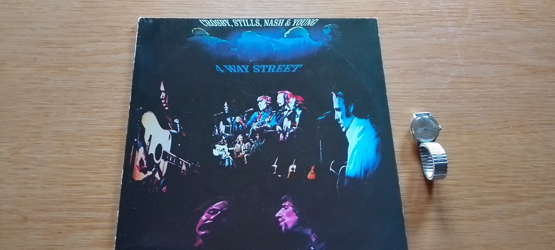 Vandaag iets bijzonders op de draaitafel: 4 Way Street, het legendarische live-album van Crosby, Stills, Nash & Young. Een rauwe, eerlijke registratie van vier muzikale grootheden op het hoogtepunt van hun kunnen het is soms harmonieus, soms messcherp, maar altijd echt.