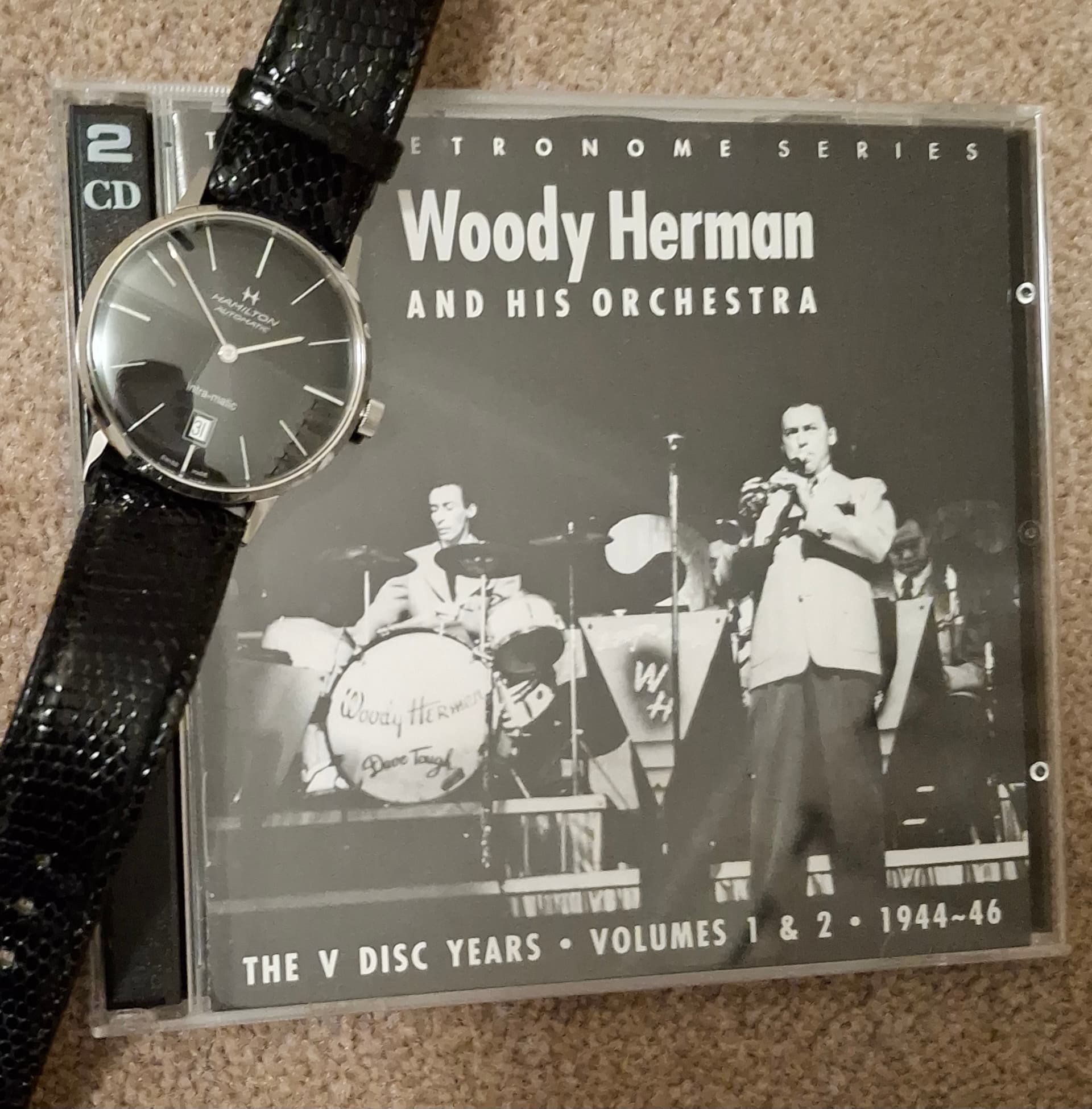 V-Discs waren platen speciaal opgenomen voor het leger om het moreel te versterken. Soldaten konden stemmen op welke muziek ze wilden horen. Een van de populairste bands was die van Woody Herman, een muzikaal wonderkind, die al op 13-jarige leeftijd volle zalen trok als klarinettist, danser en zanger. Zijn band van 1944 zat tjokvol jong talent en was razend populair, dus vele V-Disc opnamen kwamen tussen 1944-46 tot stand.