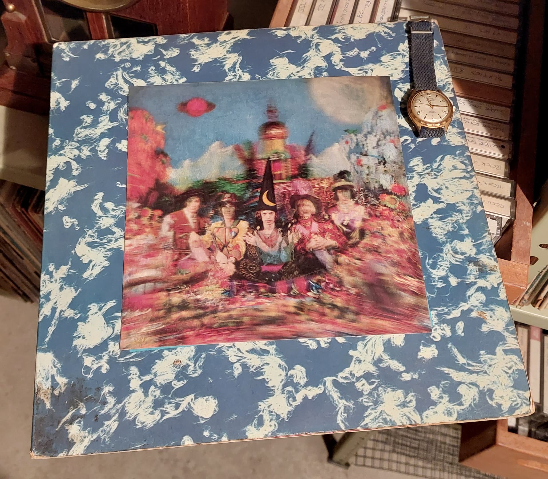 Dit is de originele lp uit 1967 met de opgeplakte 3D afbeelding: als je de hoes wat kantelt, verandert de afbeelding. Hoewel die hoes wel heel gaaf is, is de muziek niet echt geweldig, en ook niet typisch Rolling Stones. In navolging van Sgt Pepper’s van de Beatles wilden de Stones ook een wat psychedelisch album maken, maar met twijfelachtig succes. Psychedelisch is het wel, maar daar is wat mij betreft ook alles mee gezegd. “She’s a rainbow” is een schitterend nummer en “2000 Light years from home” is wel aardig en gelukkig zijn die voor- en achterkant van dezelfde single.