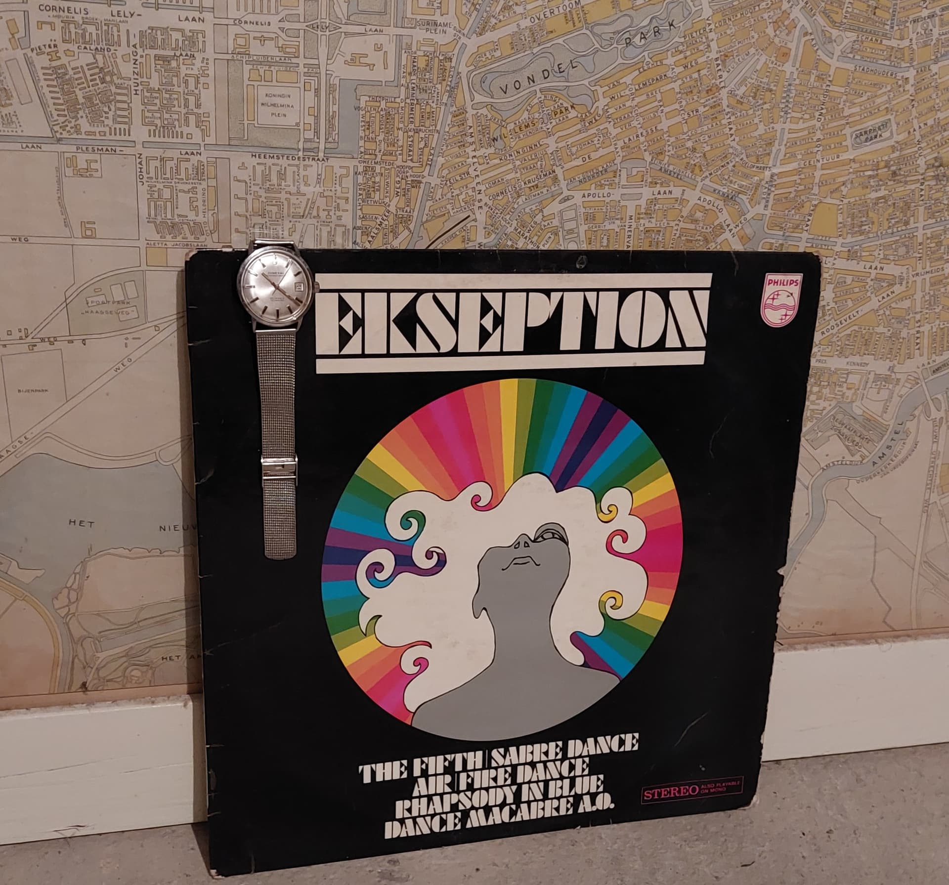 En op de achtergrond trouwens nog een oude stadsplattegrond van Amsterdam. De ring A10 bestond nog niet en de Haagse Weg kwam nog uit op de Aalsmeerweg (voor de Amsterdammers onder ons).