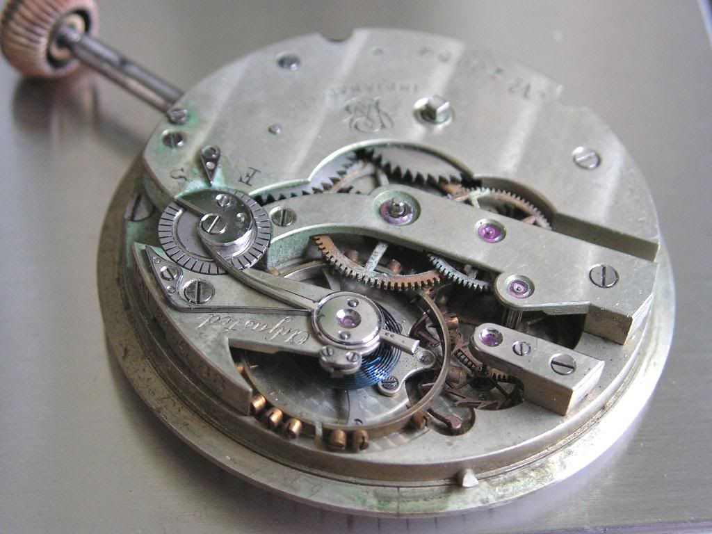De onderste is een ouder âconvertibleâ uurwerk van Elgin uit 1886. Dit uurwerk heeft als leuk detail dat het omgezet kan worden om zowel in een savonette als een normale behuizing te passen. De opwind stift kan dan op twee plaatsen het uurwerk in, bij zowel 12 als 3 uur.