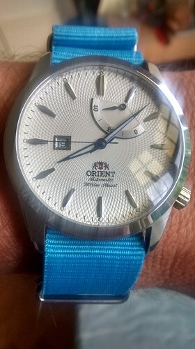 Als het zonnetje niet wil meewerken, dan gooi ik mijn Orient Millenium met blauwe (Nato, wat is dat toch lekker) band in de strijd