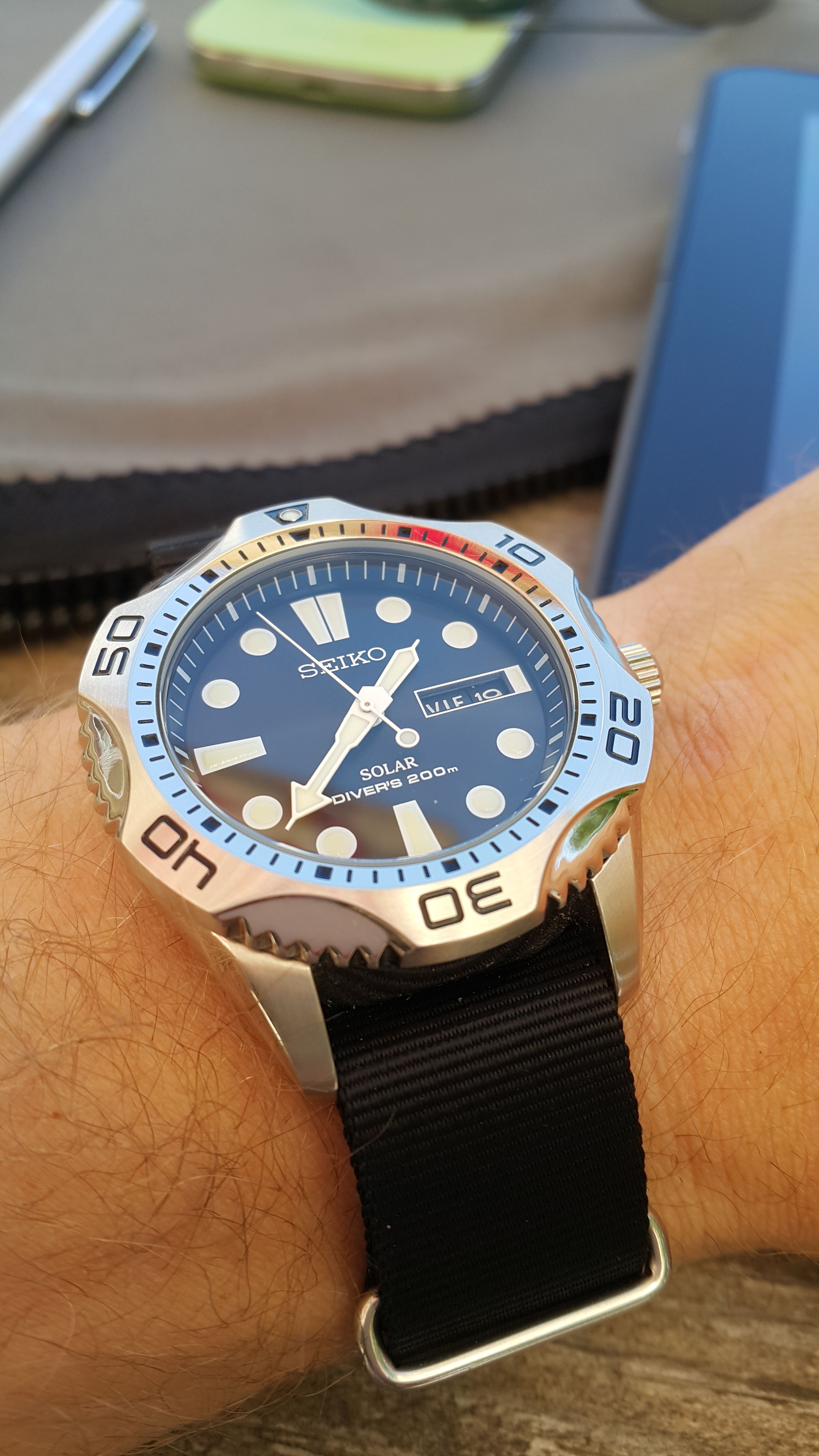 Jazeker, die heeft er járen opgelegen en heb ik toevallig eergisteren tijdelijk vervangen door deze rally. Gewoon eens wat anders, en ik kreeg er weer zin door om het horloge te dragen. Het is overigens niet de originele band, maar een 1171/1 met rechte eindlinks. Ik heb de originele 1170 wel naar die heeft helaas nog maar één 653 linkje. Toevallig een in de aanbieding?