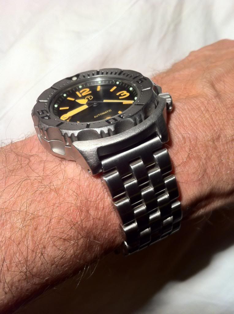 Dit is de Seiko SBDC007, ook wel de Shogun genoemd. Ik heb al heel veel horloges gehad in alle segmenten maar dit is toch wel een klokje wat mijn “sweet spot” raakt: perfecte afmetingen en het gewicht is heerlijk, komt natuurlijk omdat het titanium is…