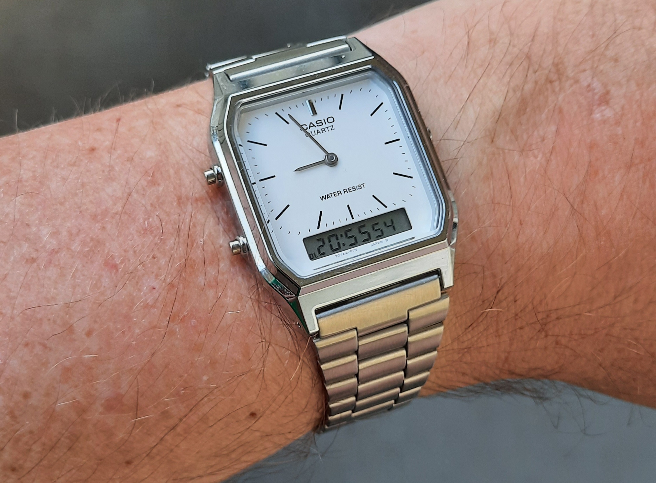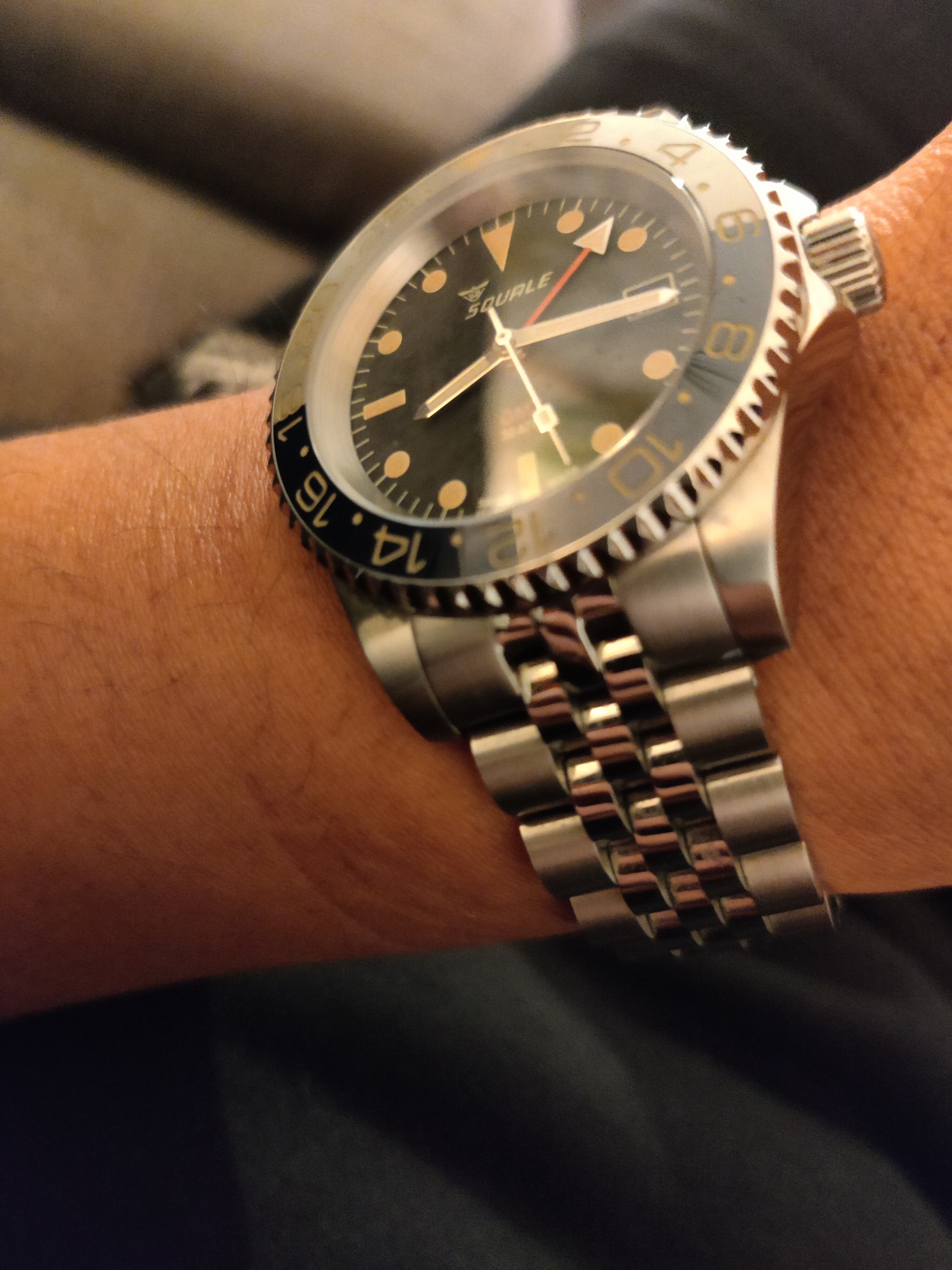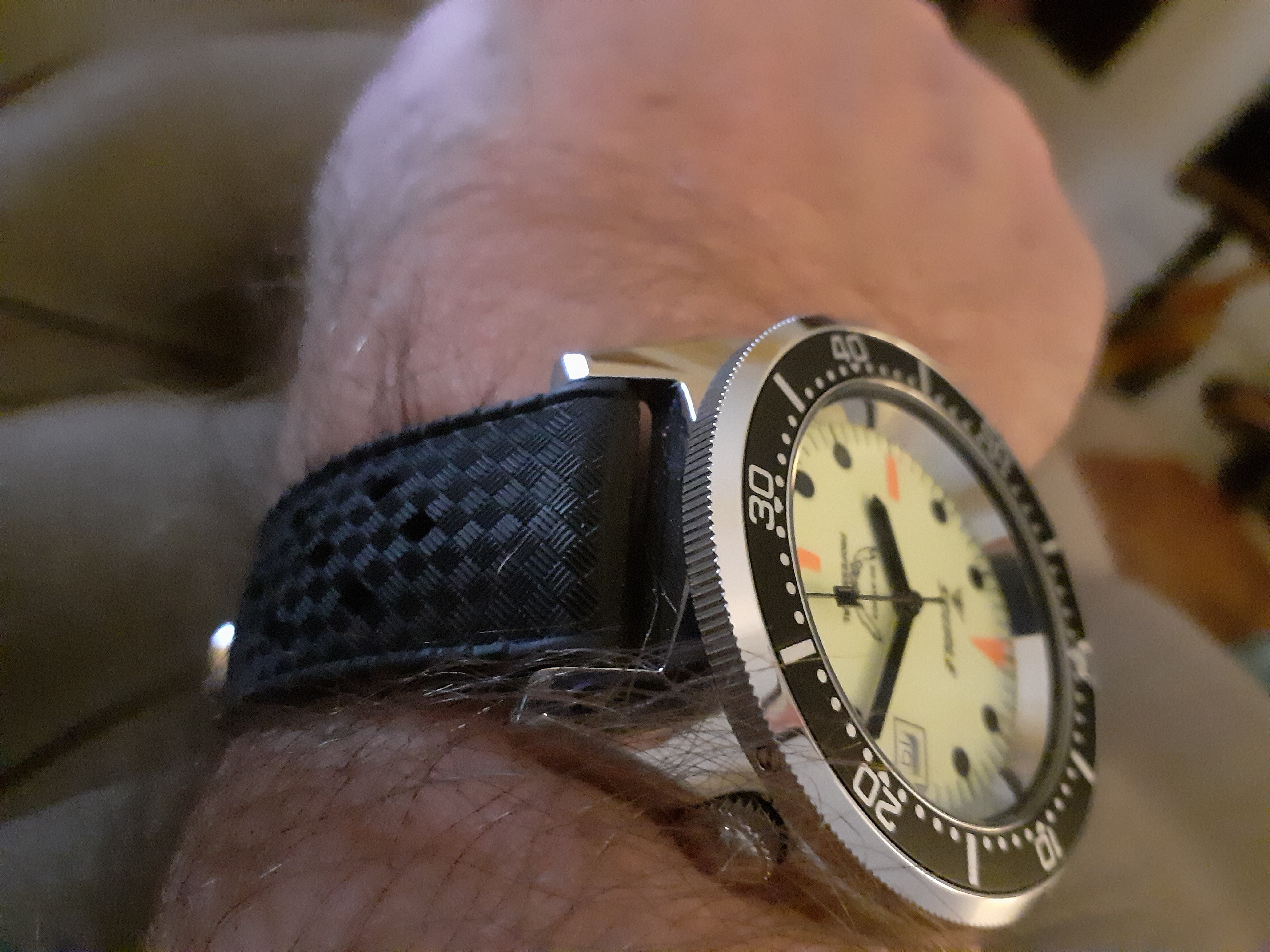 Ik draag mijn horloge het liefst op een eenvoudig Nato bandje. De bracelet, de croco en de Everest rubber, blijven over het algemeen in de bandendoos.