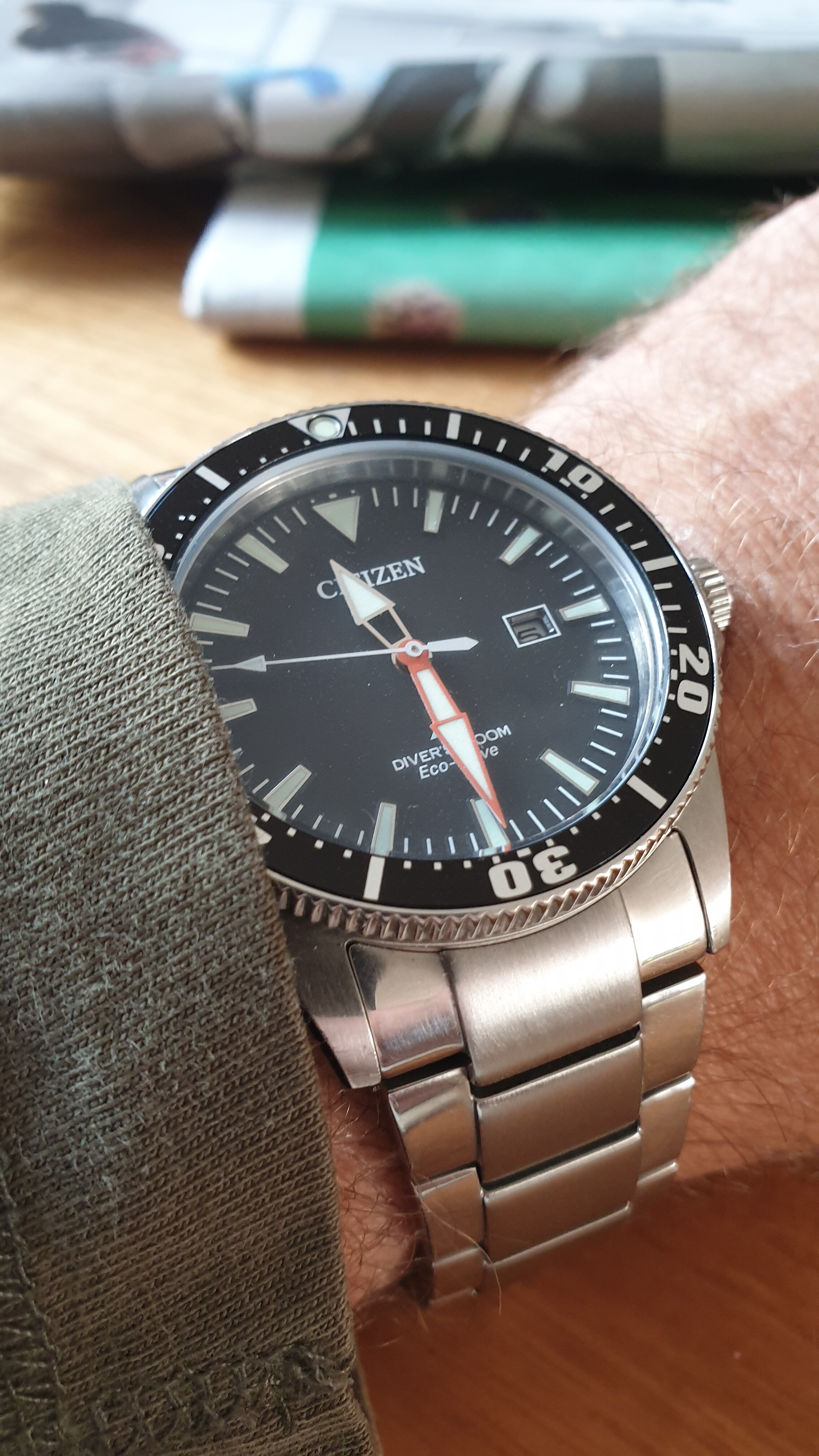 En natuurlijk tegen een stootje kunnen, niet te duur zodat krassen geen huilbuien opleveren. Mijn Citizen BN0100 Eco-Drive is al jaren mijn vakantie/klus beater.