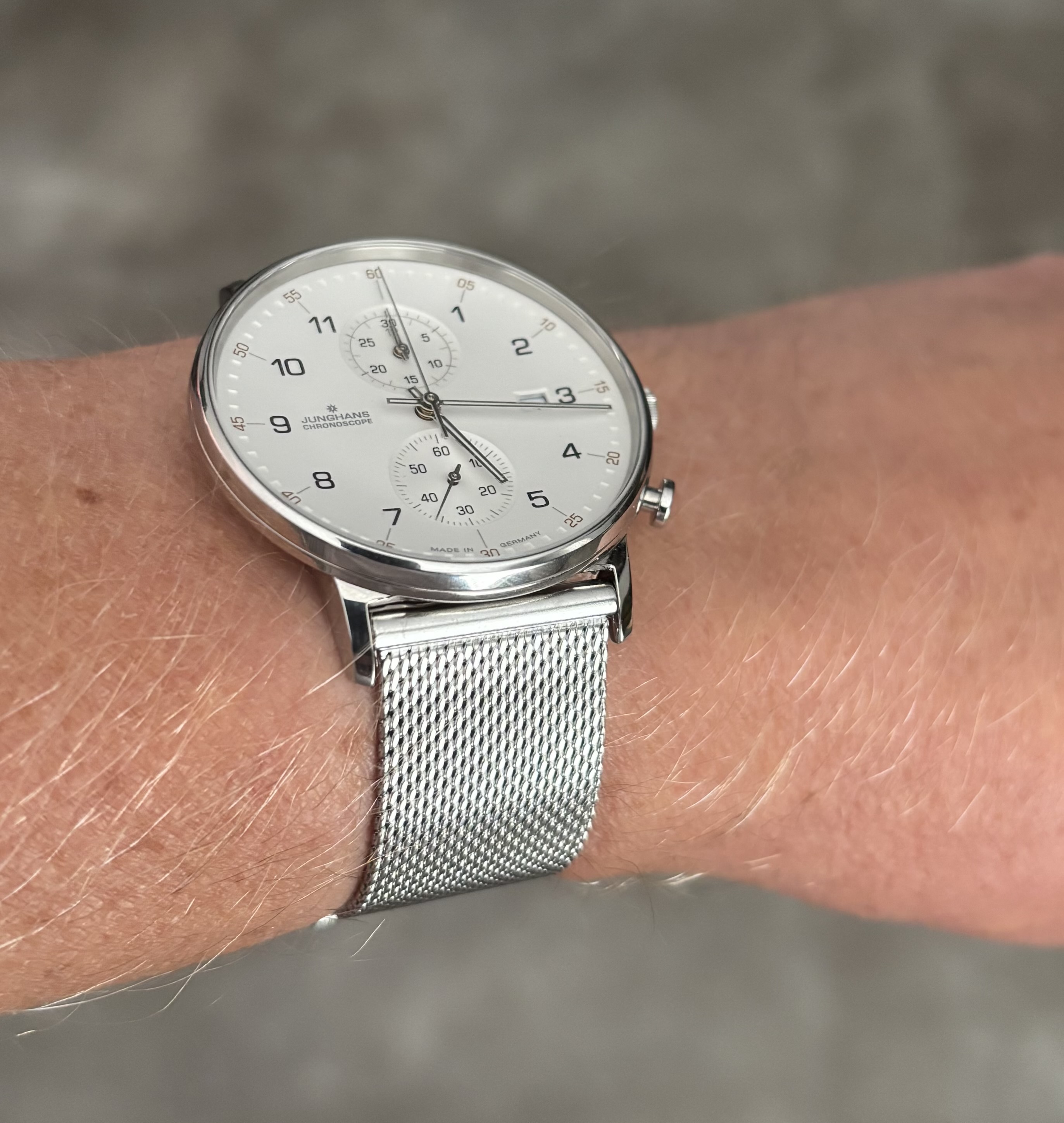 Ik zou graag op mijn Junghans form C een mooi suède bandje zetten in een grijze of taupe kleur.