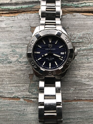 Mijn vrouw afgelopen voorjaar een echt horloge cadeau gedaan, omdat ik het niet langer kon aanzien dat mijn zoon en ik met bijvoorbeeld een Tudor omliepen en zij met een horloge van een mode merk. Ze is blij met haar Tag Heuer Aquaracer en draagt deze dagelijks, maar van mijn liefhebberij/passie/obsessie snapt ze niets! Maar wie weet op een dag?