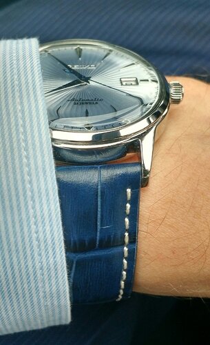 Met een metalen band weliswaar. geweldige klok. Robuust, mooi afgewerkt. Met een duidelijke knipoog naar het verleden. Toen ik naar huis reed dacht ik: Waarom geen Baume & Mercier? Grappig dat hier dan al een topic klaar staat om daar op te reflecteren Toeval bestaat niet.