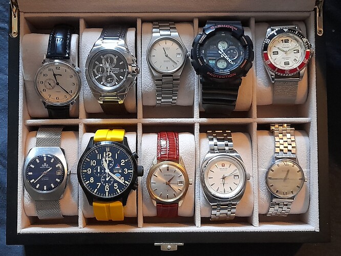 Ik heb een verzameling van alles bij elkaar meer dan 20 horloges. Daarvan draag ik er een stuk of 12 actief op basis van waar ik zin in hem. Steeds 3 thuis en de rest in de kluis. Vroeger moest ik meestal iets verkopen om weer iets nieuws te kopen nu is dat minder het geval. Dus de horloges waarvan ik geniet of om andere redenen (vaak emotioneel of omdat 1 van mijn beide zonen ze geclaimd hebben) houd kunnen gewoon blijven als er iets bijkomt