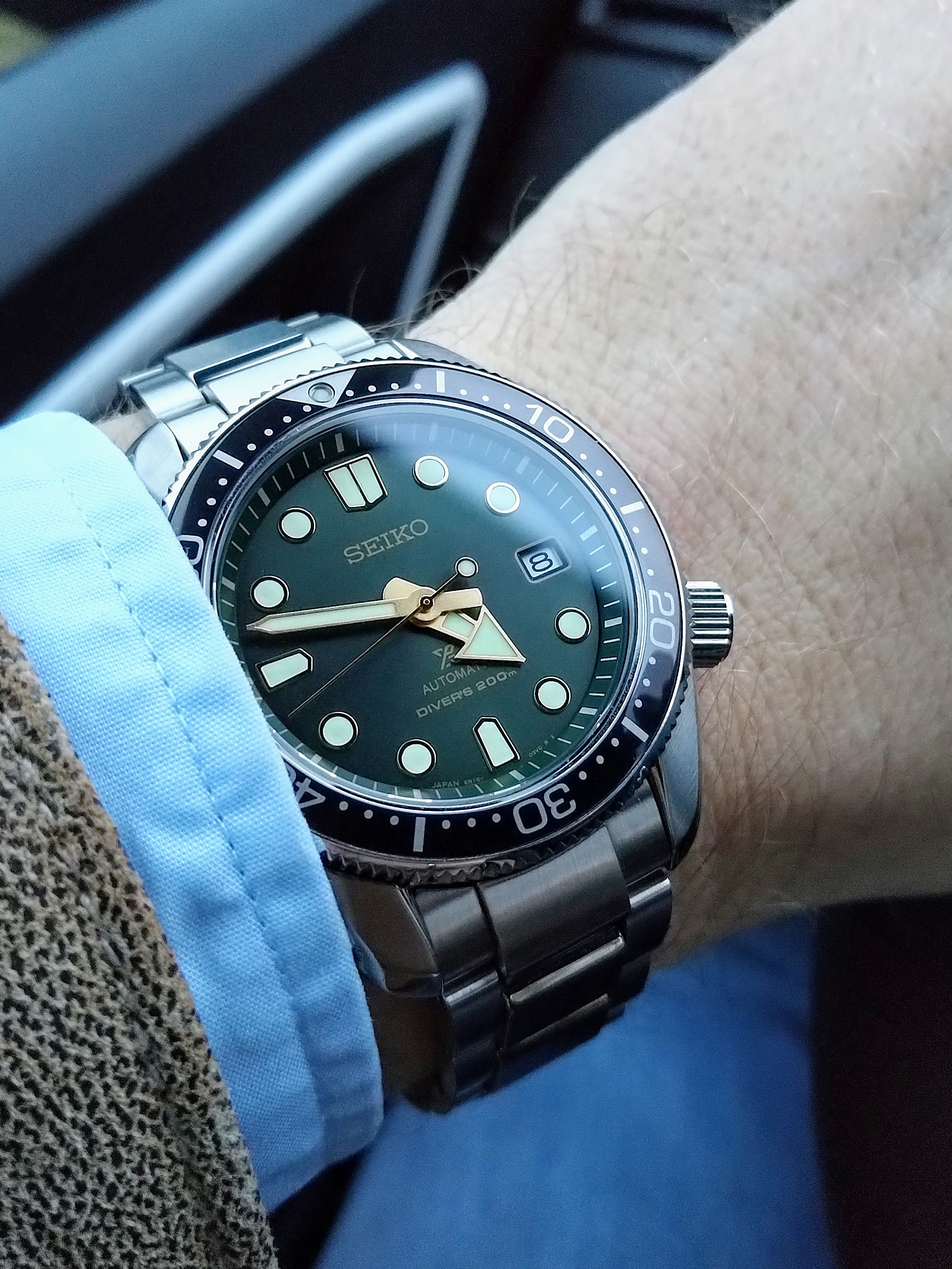 Tsja… Ik wilde niks uitgeven, maar begin dit jaar wel een Prospex als aanvulling op de GS, Astron en Presage… Een nieuwe Alpinist? Eh, toch kruipt het bloed waar het niet gaan kon ik deze niet laten liggen. Dat groen! En ook weer die afwerking…