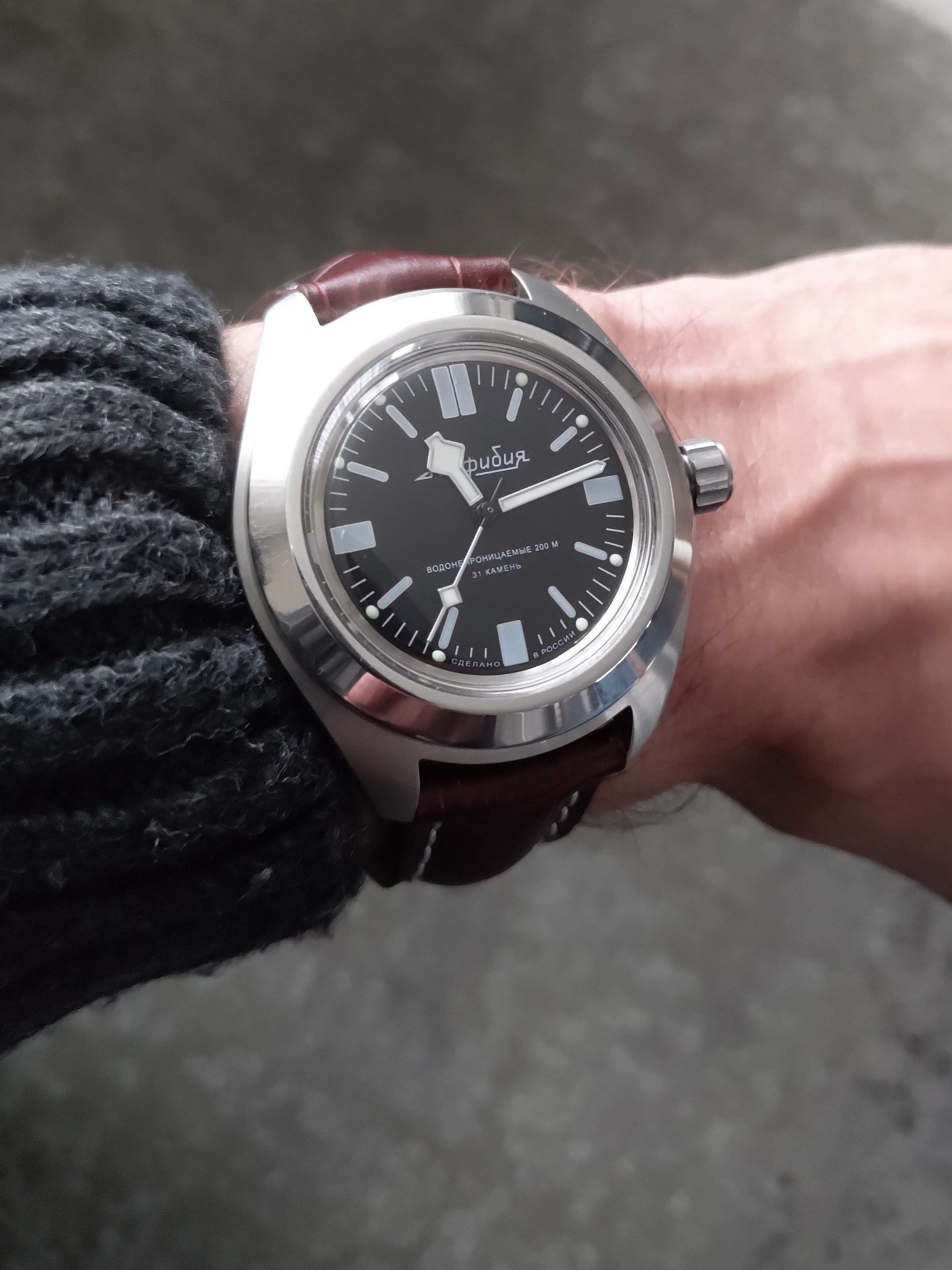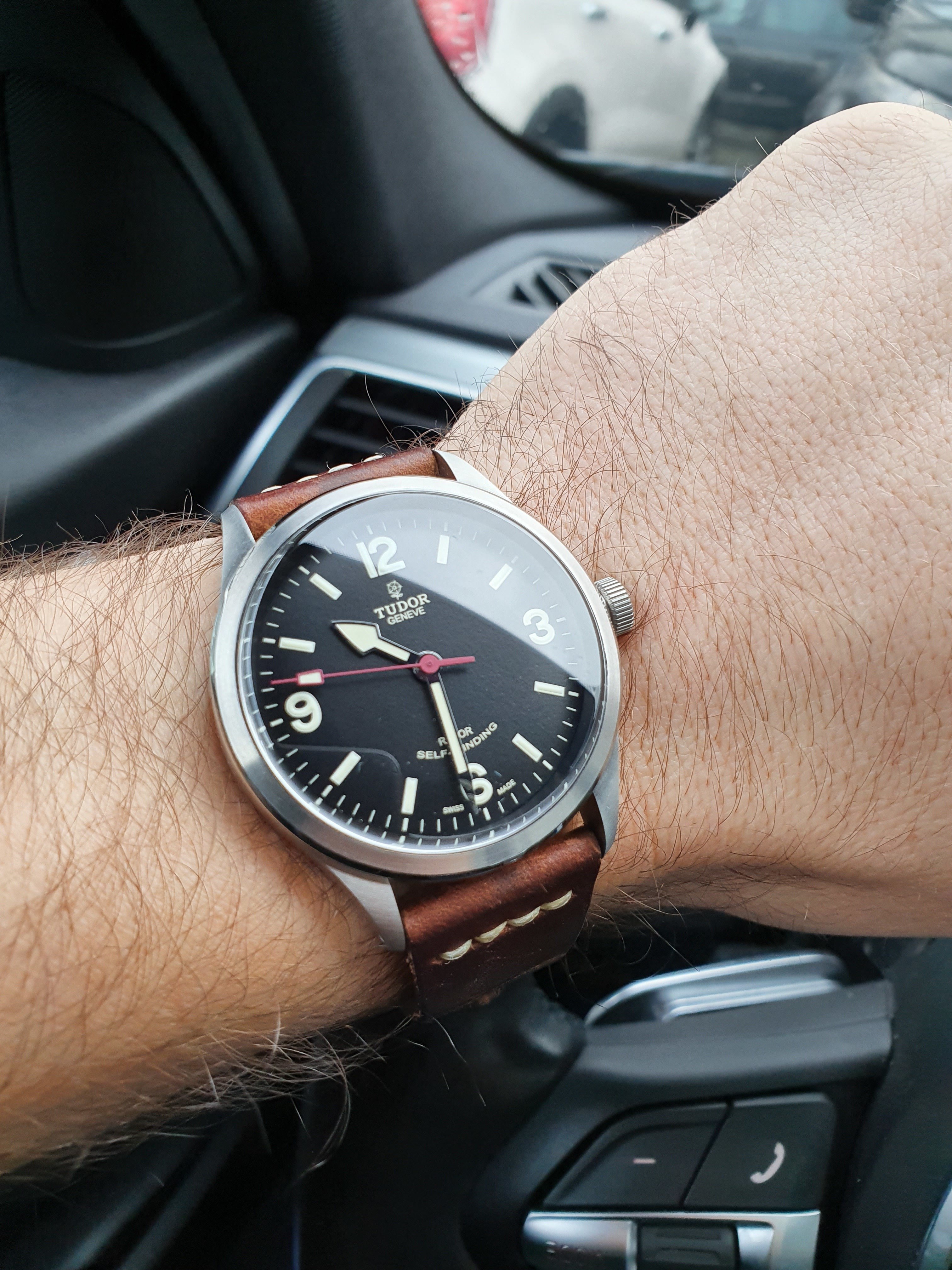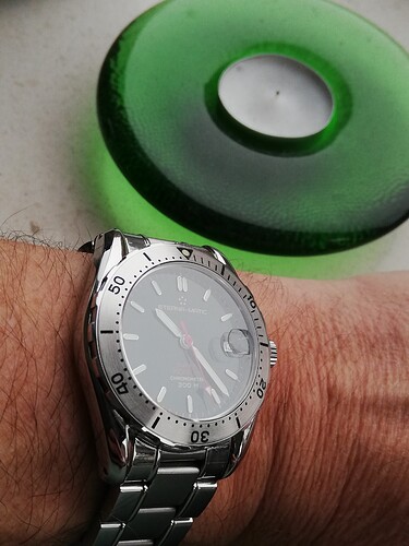 Mooi horloge is dat! Ik heb ooit de chrono uit die serie gehad, met rode wijzerplaat. Heel fraai en comfortabel horloge. Heb jij een zwarte of groene wijzerplaat? Kan ik op de foto niet helemaal goed zien.