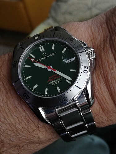 Heel mooi die kleur, geniet van je Eterna! Eigenlijk offtopic, want al heel lang niet meer om de pols: