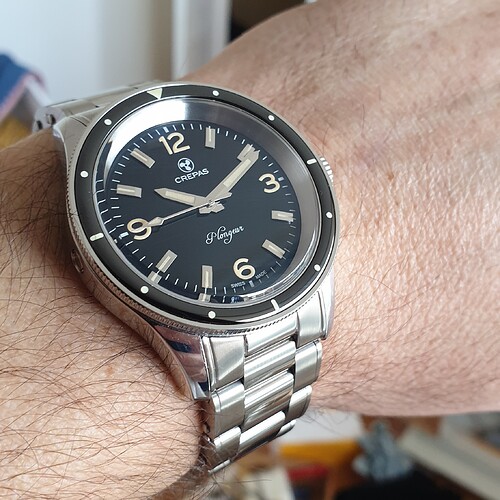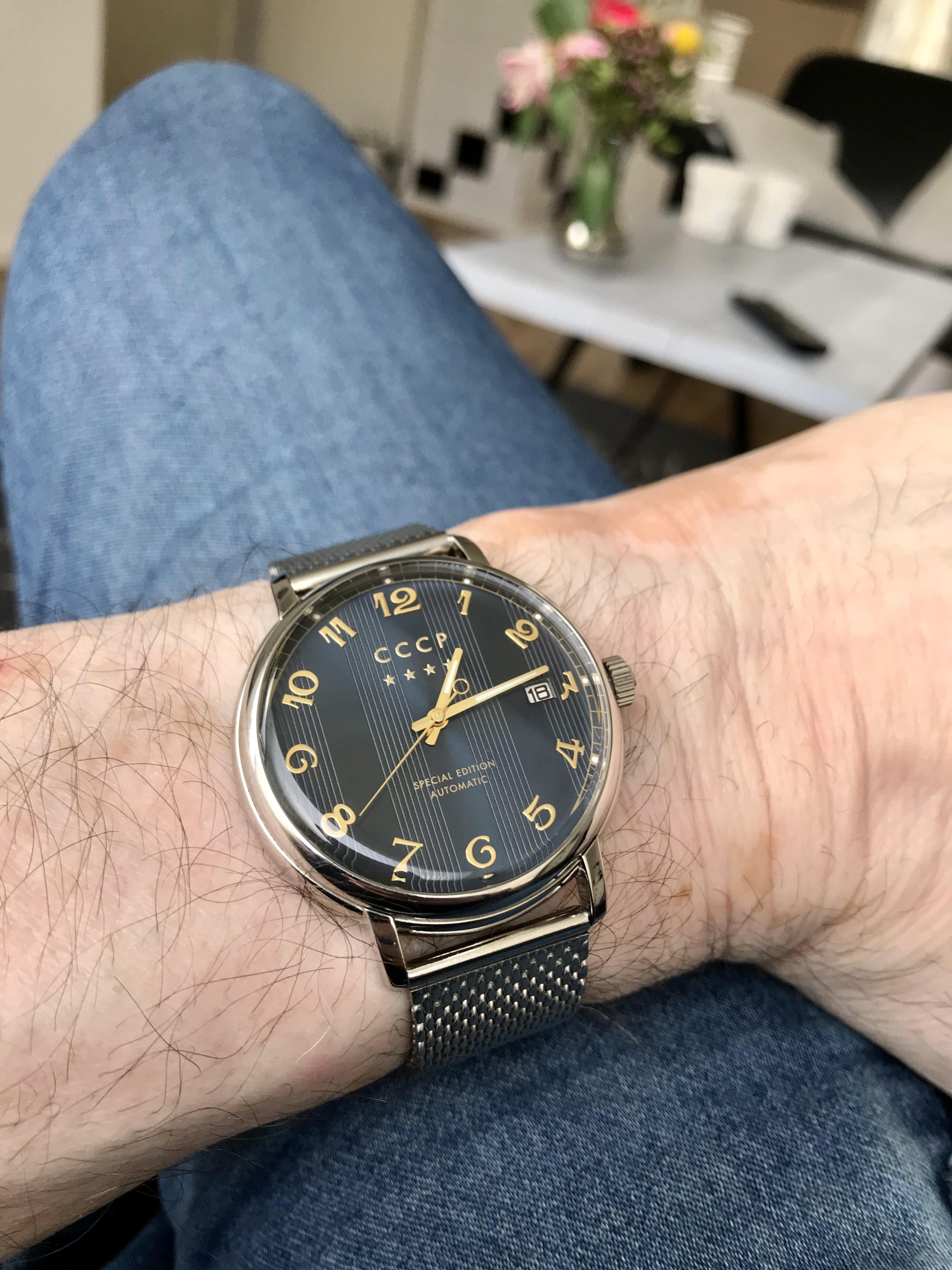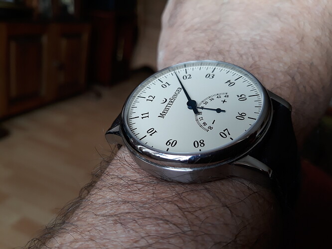 Het is een saffiano leren bandje van MT-Straps, Italië.