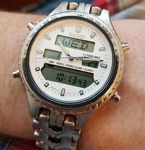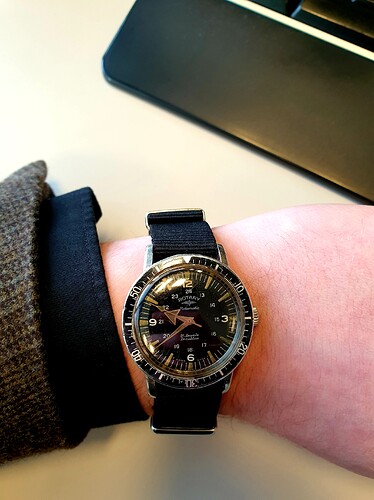 Deze kwam vandaag binnen (om te proberen) en direct om de pols. 35m is wel even wennen dus we gaan het zien of hij blijft. Vintage is voor mijn gevoel zo fragiel…