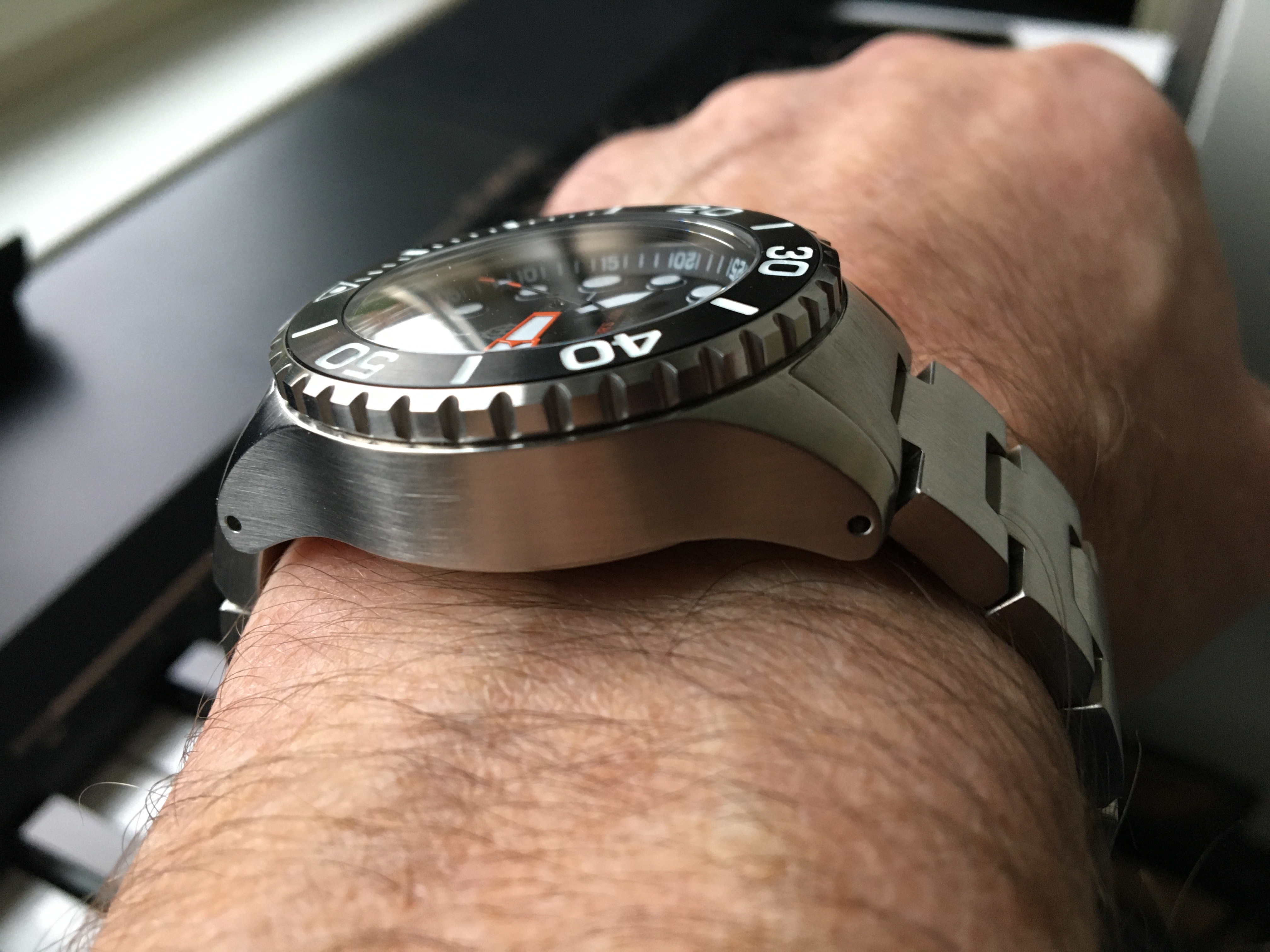 Niks “aan de hand”, heb los vel en de band schuift prima heen en weer. Is ook een beetje om het horloge goed uit te lichten, dat ik mijn pols wat verdraai.