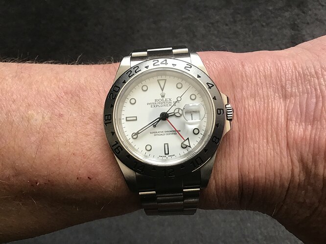 Wel gaaf hoe de polish op de wijzers vaak zwart lijkt.