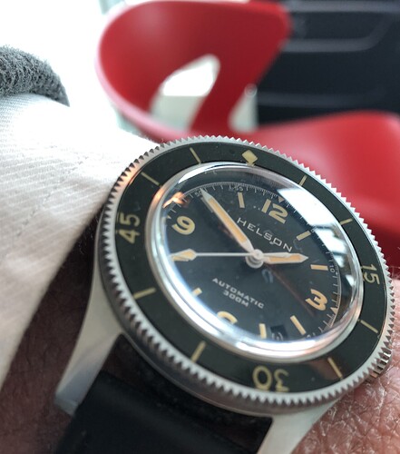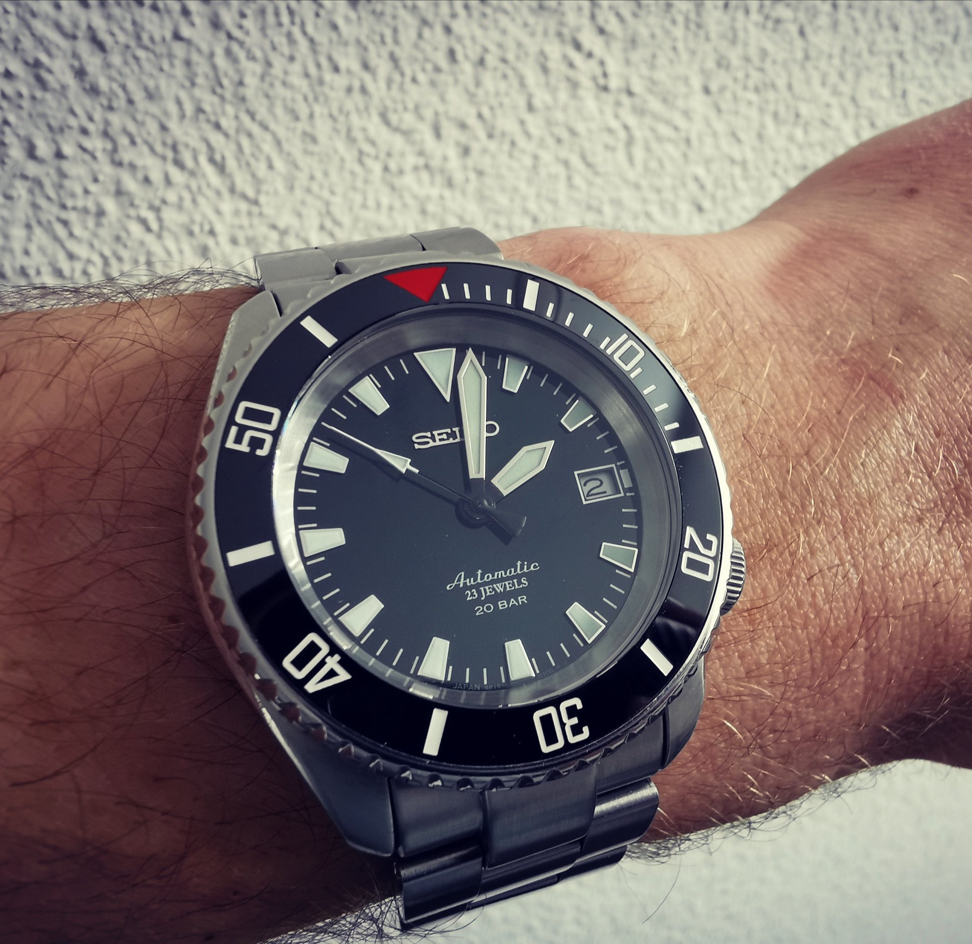 Geen succes in het blauwe deel dus draag ik hem zelf weer sinds een paar dagen. Ben geen fan van de SKX maar nu naar een paar dagen begin ik het model een beetje te waarderen.