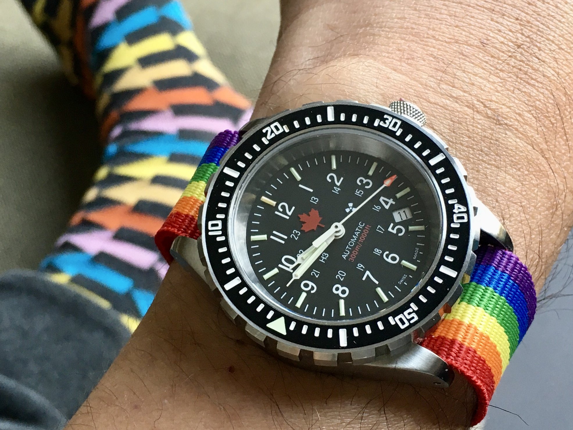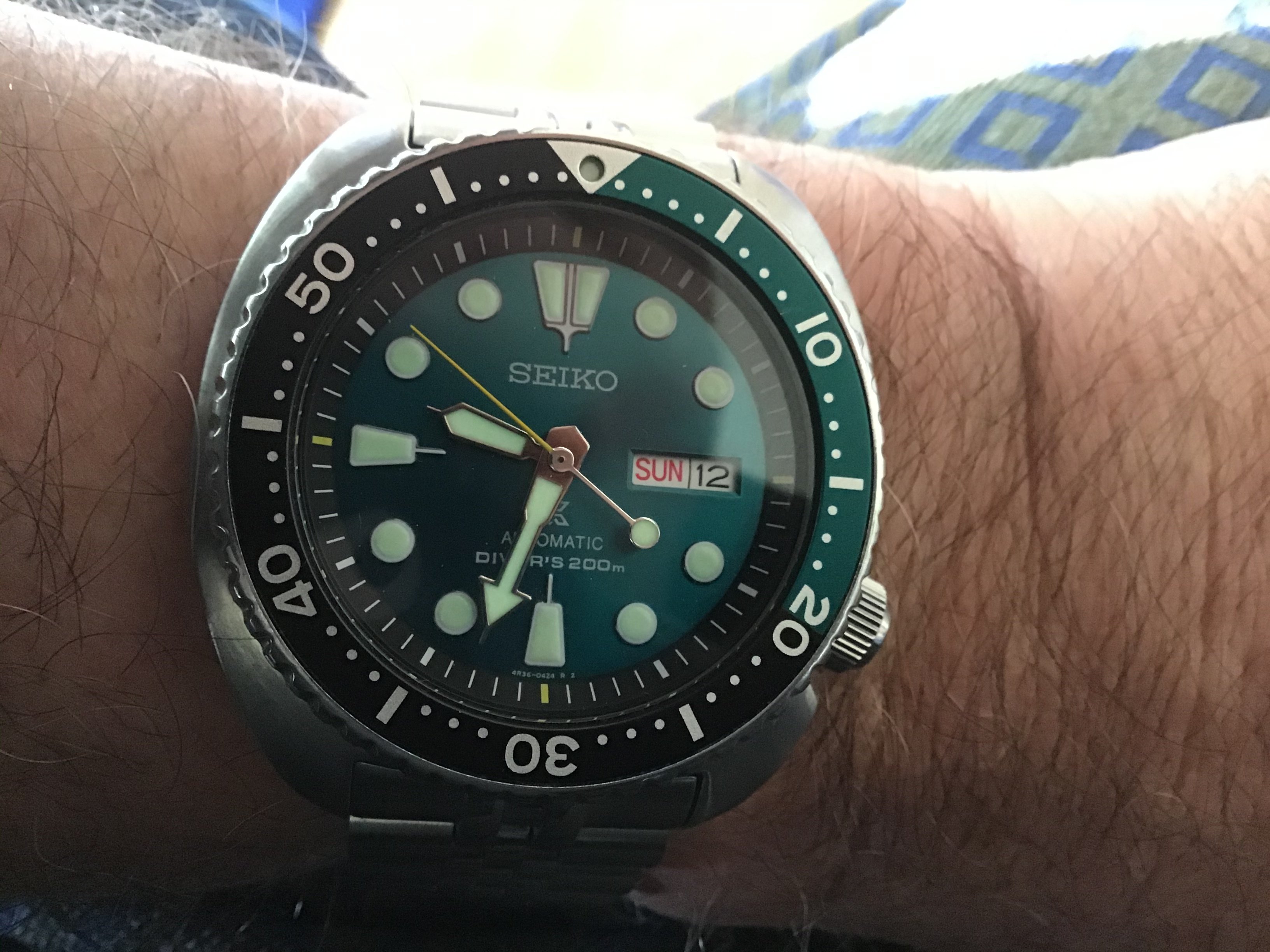 Een wat gehavende sluiting, maar die is dan ook al vijf jaar oud (van m’n SARB033). Die twee horloges delen de ene overgebleven bracelet.