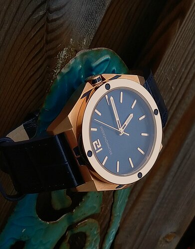Het op maat buigen van de end links was een hel. En er staat best wat spanning op de springbars. Maar hij ziet er op en het ziet er vrij geniaal uit. Al zeg ik het zelf.